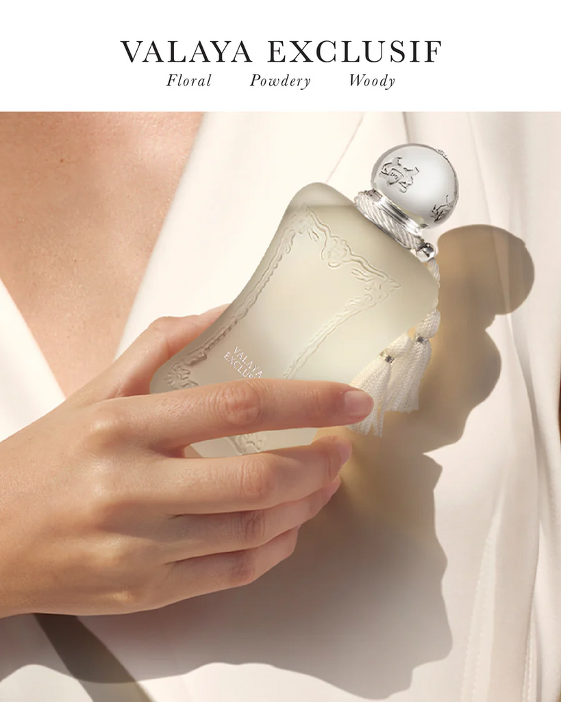 Valaya Exclusif by Parfums de Marly is a fragrance for women. This is a new fragrance. Valaya Exclusif was launched in 2025. Top notes are Almond, Mandarin and Bergamot; middle notes are Powdery Notes, White Flowers and Orange Blossom; base notes are Vanilla, Akigalawood, Ambroxan and Sandalwood.