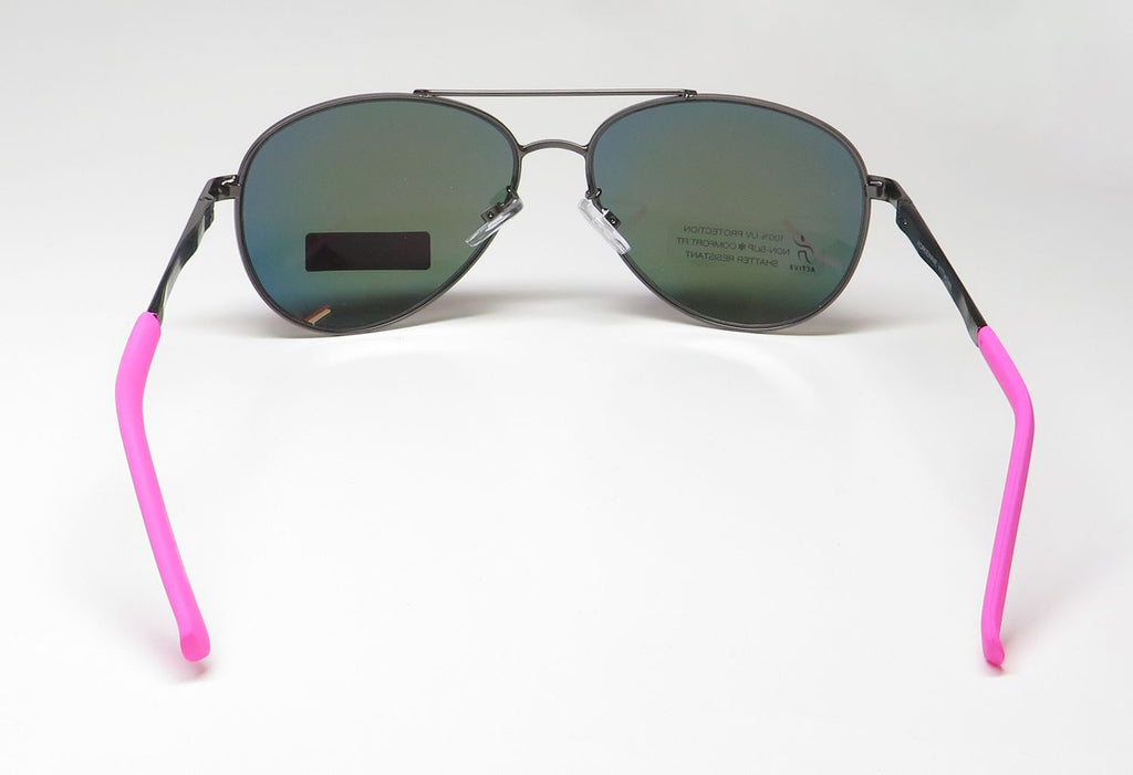 Sunglasses have become the ultimate fashion accessory. Designer shades not only make a fashion statement but protect your eyes from the sun's harmful ultraviolet (UV) rays. These sunglasses provide comfortable fit and flatter a variety of face shapes. Lenses are mirror coated which makes them appear like small mirrors. The mirror coating significantly decreases the amount of light passing through the lens making it useful for conditions such as sand, water, snow, and higher altitudes. These shades are made of metal and high quality, durable acetate plastic. The frame has spring hinges. Spring hinge temples prevent you from stretching the fit of your sunglasses and ensure that they remain intact and not become loose or out of shape. Original case is included. The sunglasses are made in China.