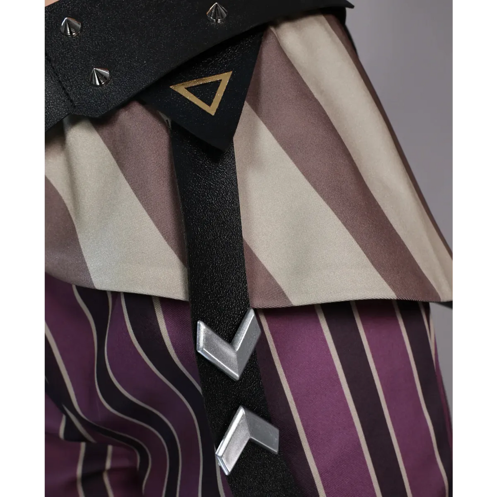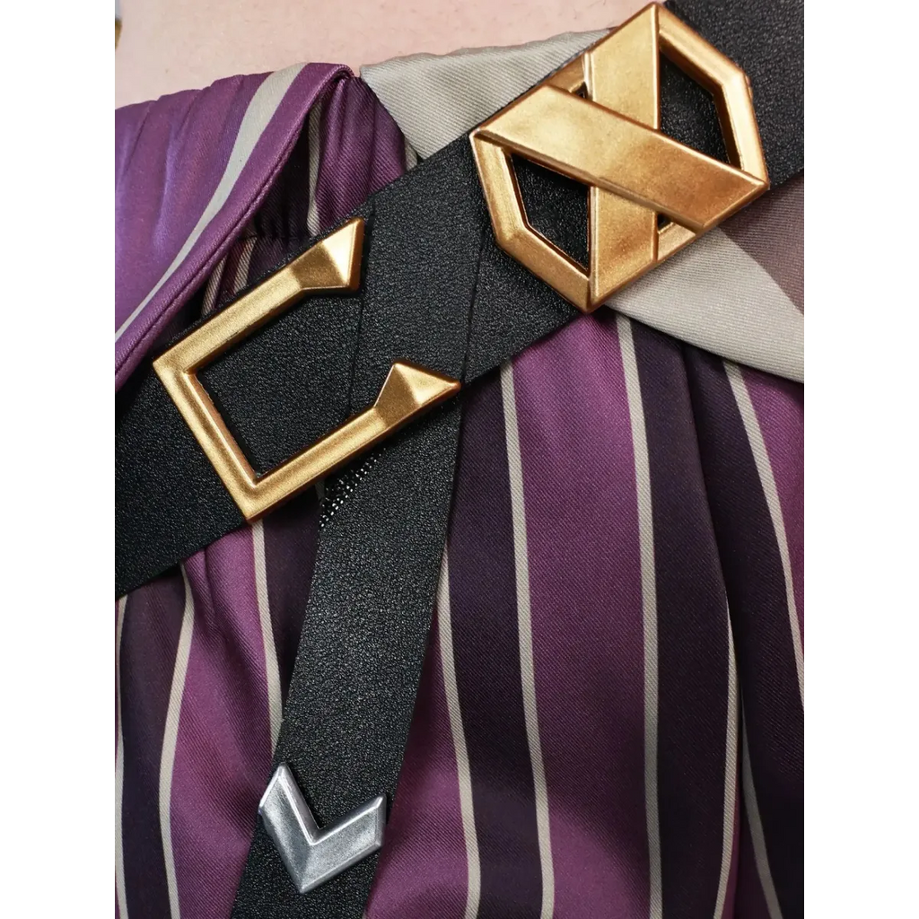 • Bold purple stripes and faux leather details for screen-accurate flair