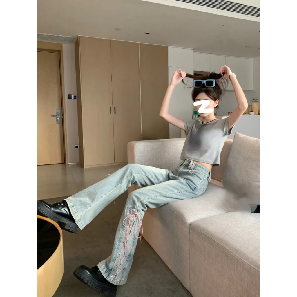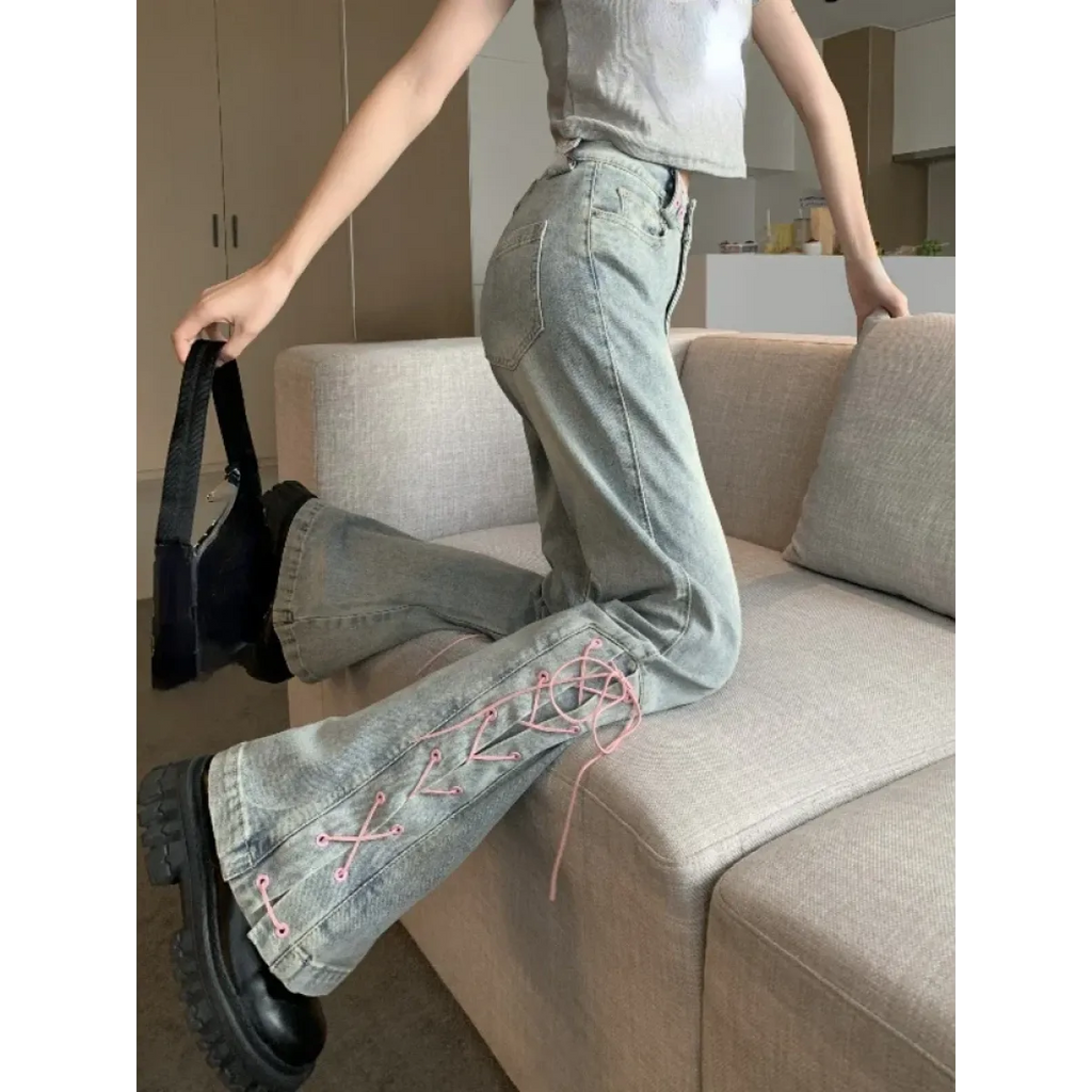 Denim Vintage Harajuku Lace-Up Flare Jeans