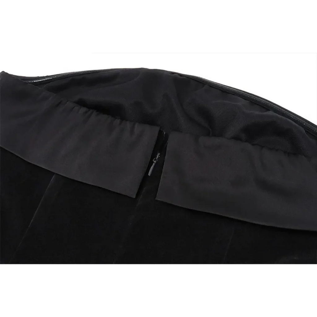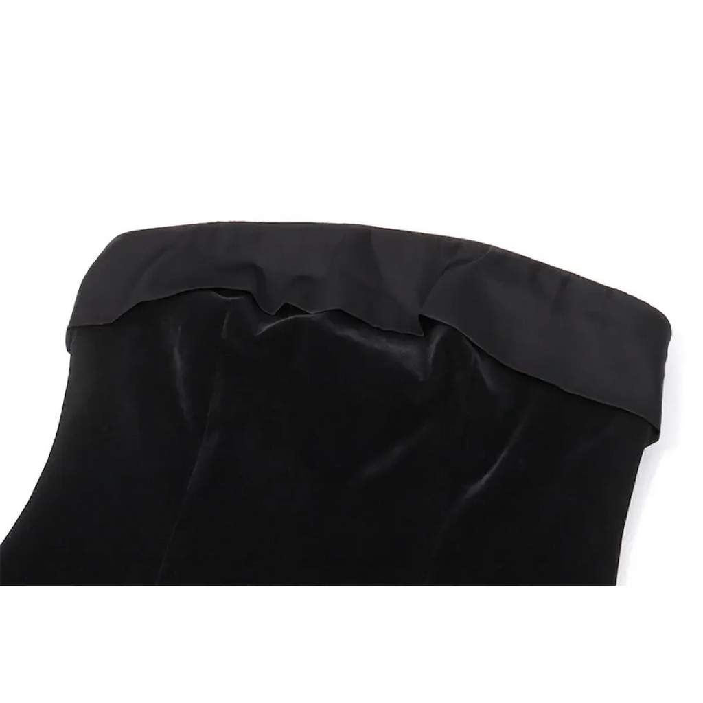 The Elegant Velvet Mini Dress is a slim-fit strapless mini dress featuring a luxe velvet finish and A-line silhouette, perfect for holiday parties or elegant evenings out.