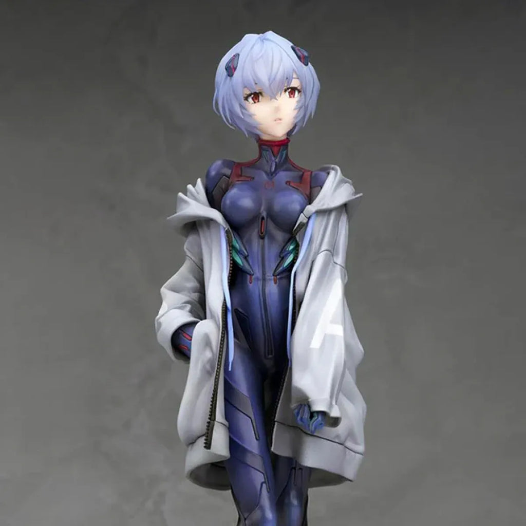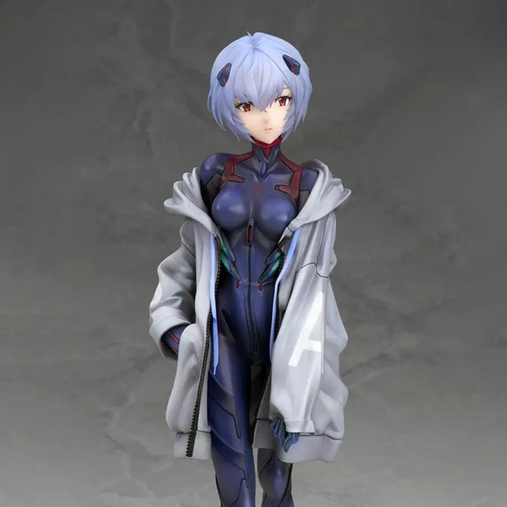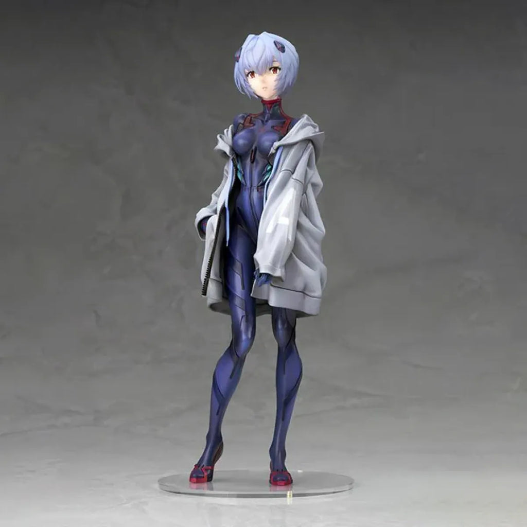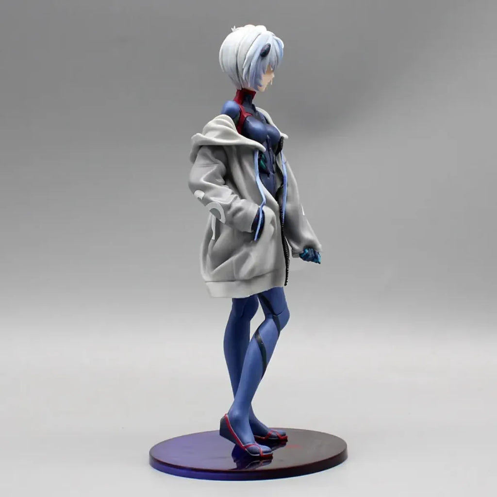 Evangelion Figures is a 22cm collectible model featuring Ayanami Rei in her signature plugsuit and hoodie, perfect for anime display or gifting.