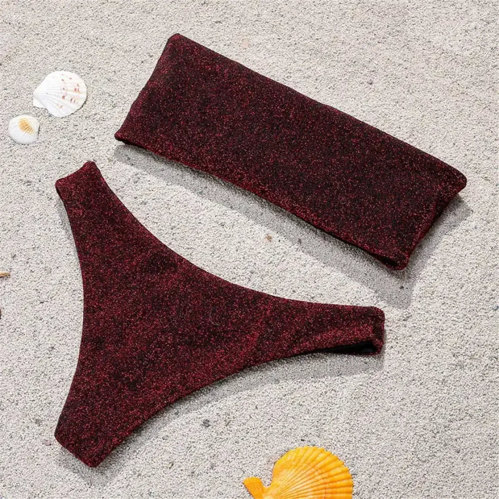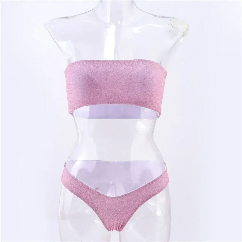 Glitter Strapless Bikini Set – Shiny Sparkle Beachwear 2025