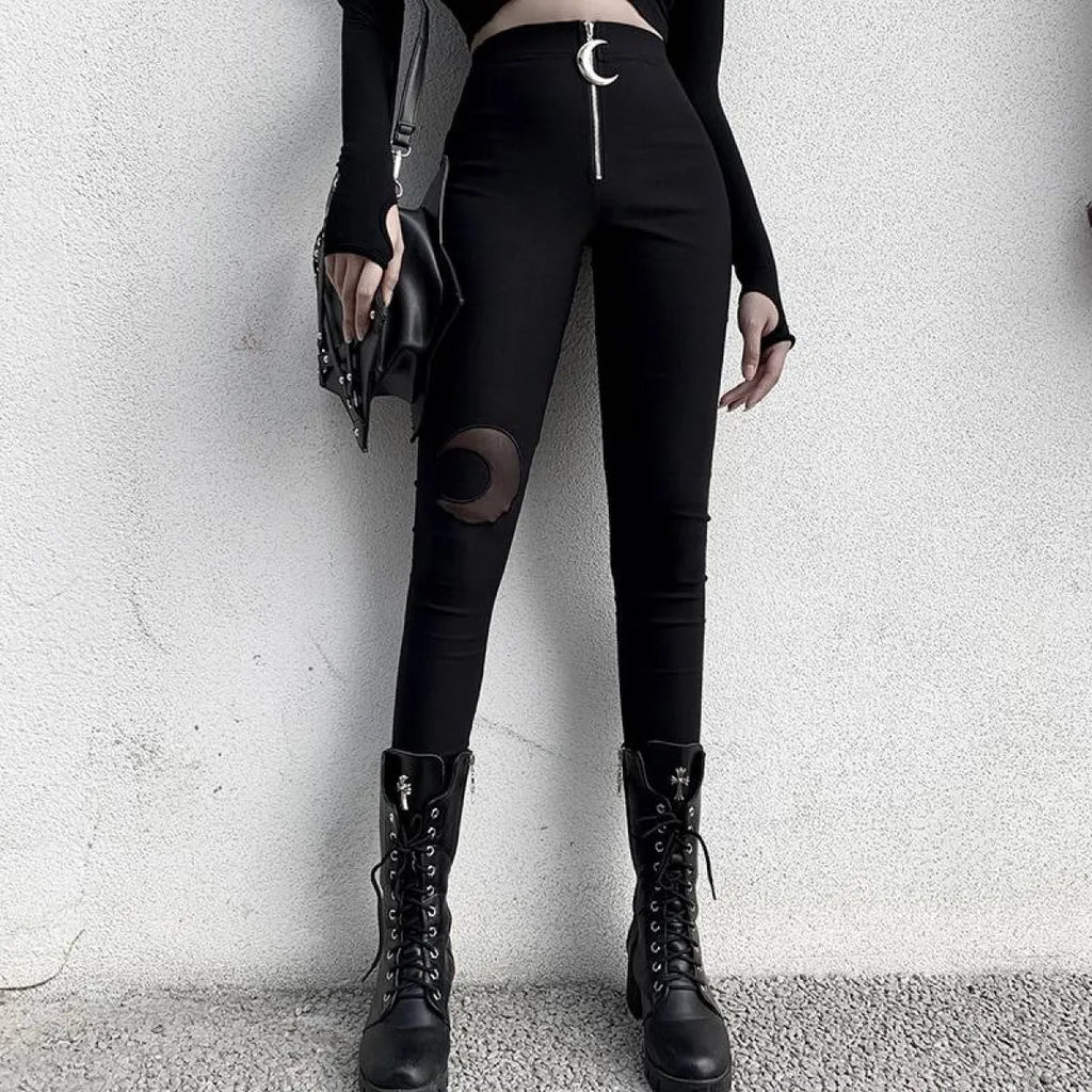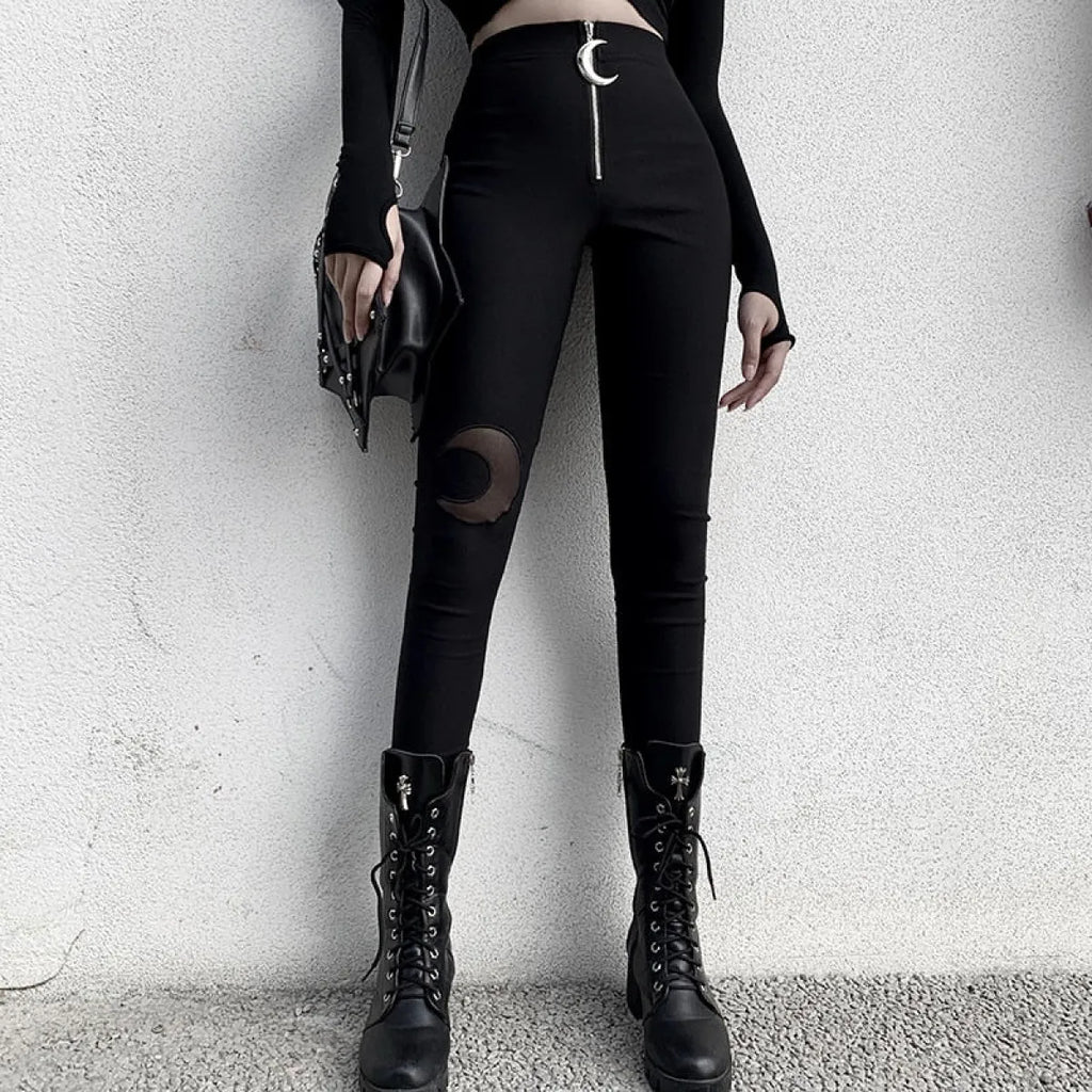 Gothic Crescent Moon Cutout Pants