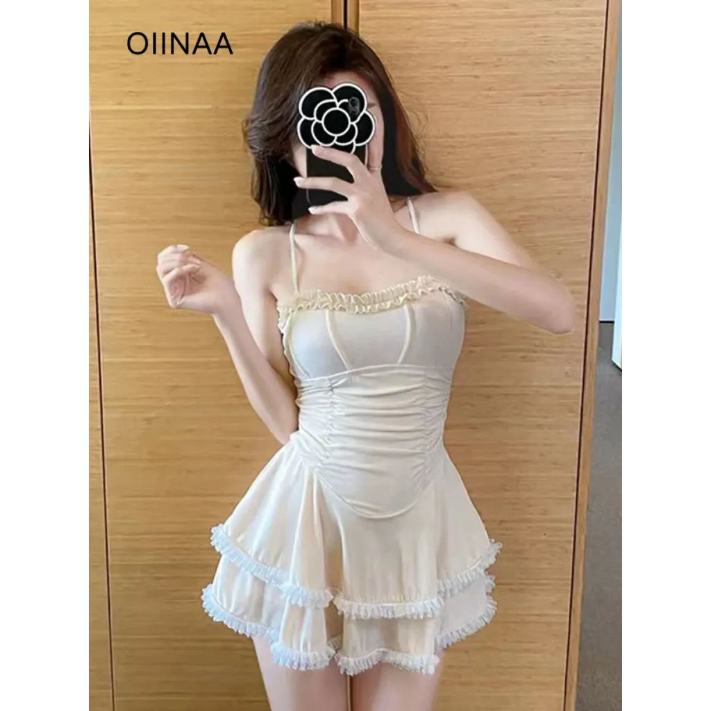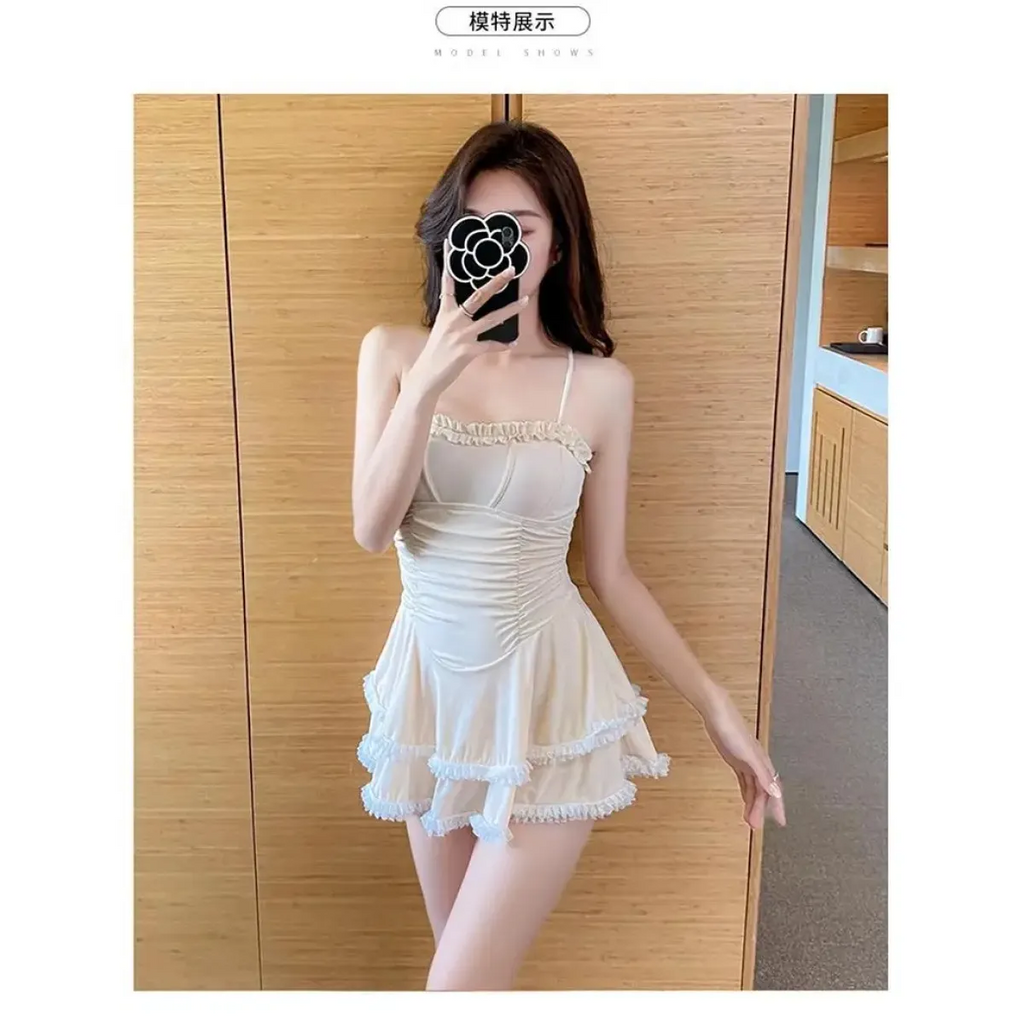 Halter Lace Swimsuit Dress – Ruffled Girly Slim Beachwear 2025