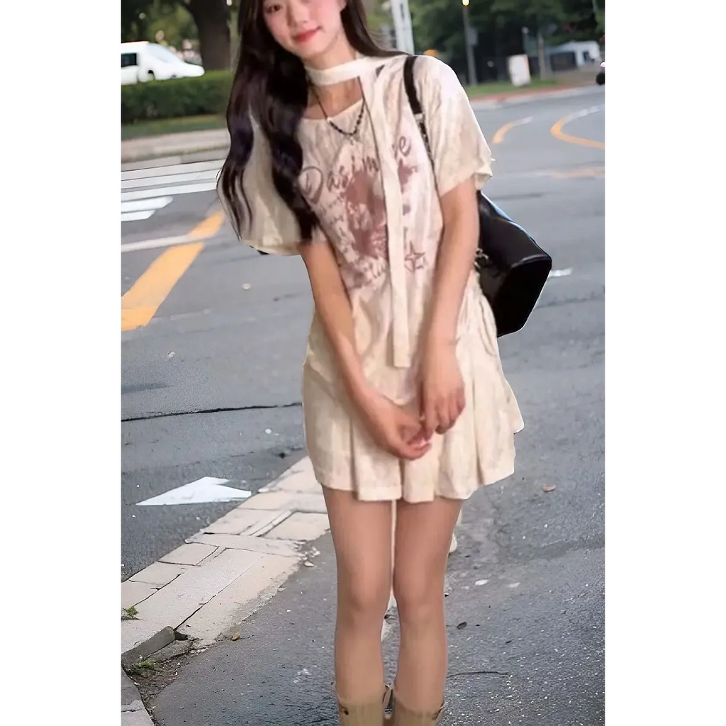 Pair this tee with a pleated mini skirt, chunky sneakers, and layered necklaces for the ultimate Harajuku streetwear look. Add an arm warmer or choker for extra grunge flair!