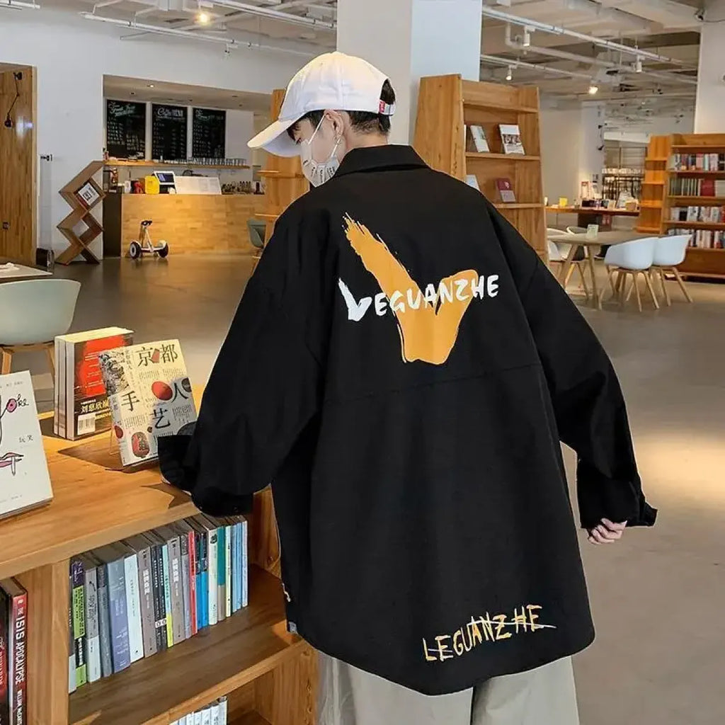 Pair it with wide-leg pants, chunky sneakers, and a bucket hat for a full Harajuku streetwear look. Or wear it open over a graphic tee for layered edge.