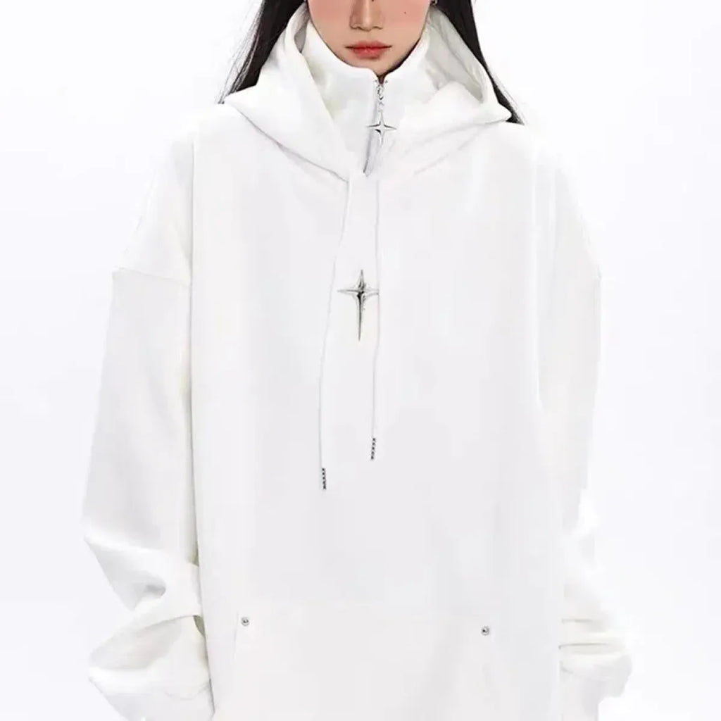 This oversized hoodie brings edgy Harajuku fashion straight to your closet with a sleek high-neck design and eye-catching star zipper pull. Built for all-gender streetwear lovers, it’s a standout piece that keeps you cozy and cool year-round.