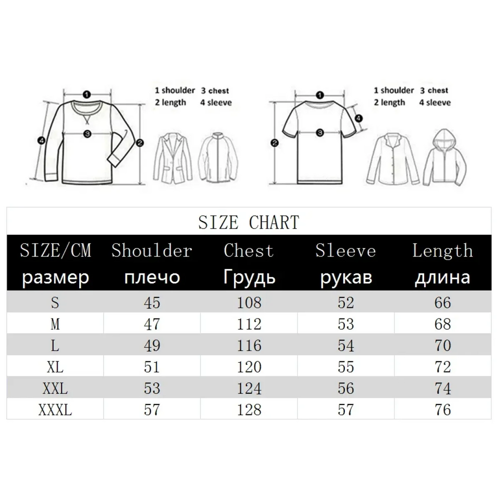 Size | Shoulder (cm) | Chest (cm) | Sleeve (cm) | Length (cm) |