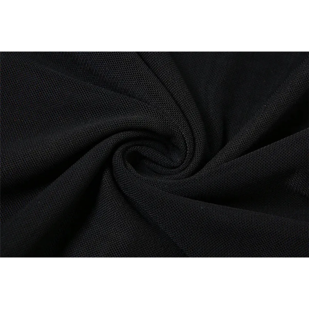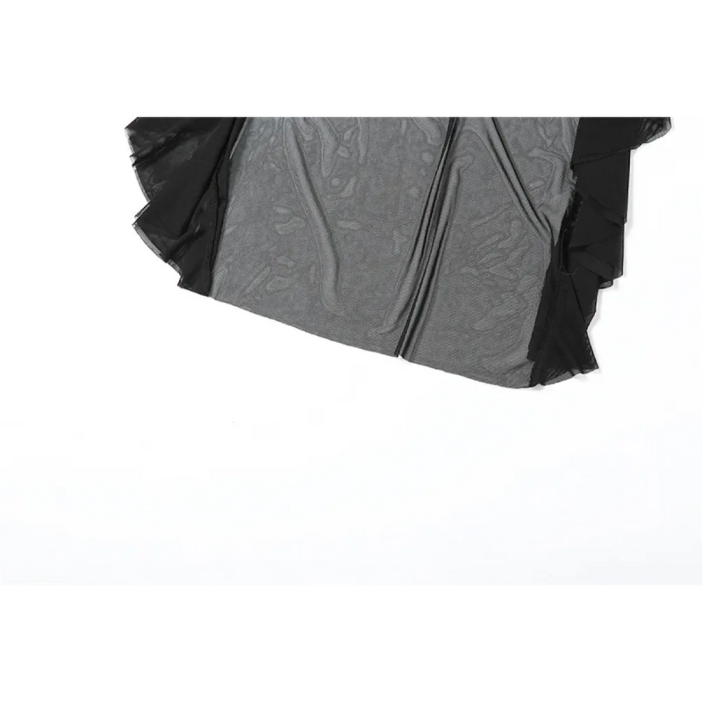 Pair it with chunky platform boots or heels and layered silver jewelry for a goth-luxe aesthetic. Throw on a cropped jacket or fishnet shrug to amp up the Harajuku vibes.