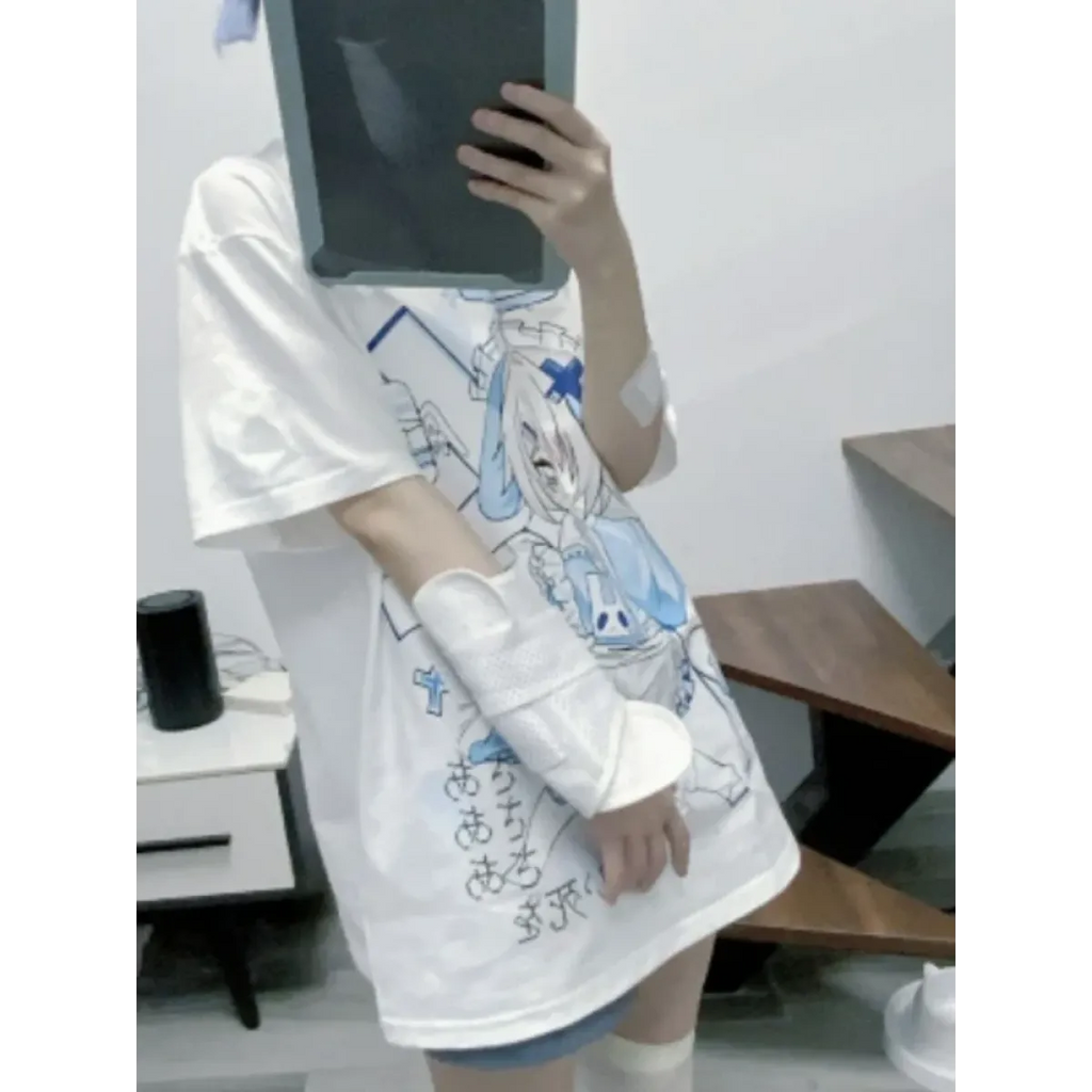 Pair it with pleated skirts, leg warmers, and chunky sneakers for a dreamy Harajuku aesthetic. Add a bandage accessory or layered necklaces for that extra alt-anime flair.