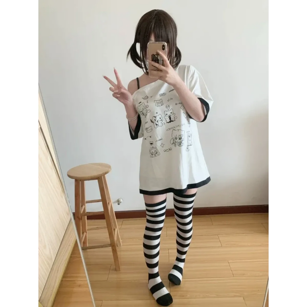 Harajuku Kawaii Cartoon Print Loose Tee – Gothic Sweet Style