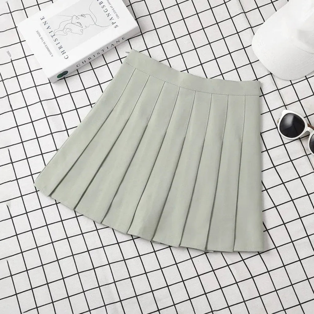 Harajuku Kawaii Fashion Korean Style Y2K Aesthetic Neutral Colors Pleated Tennis Skirt