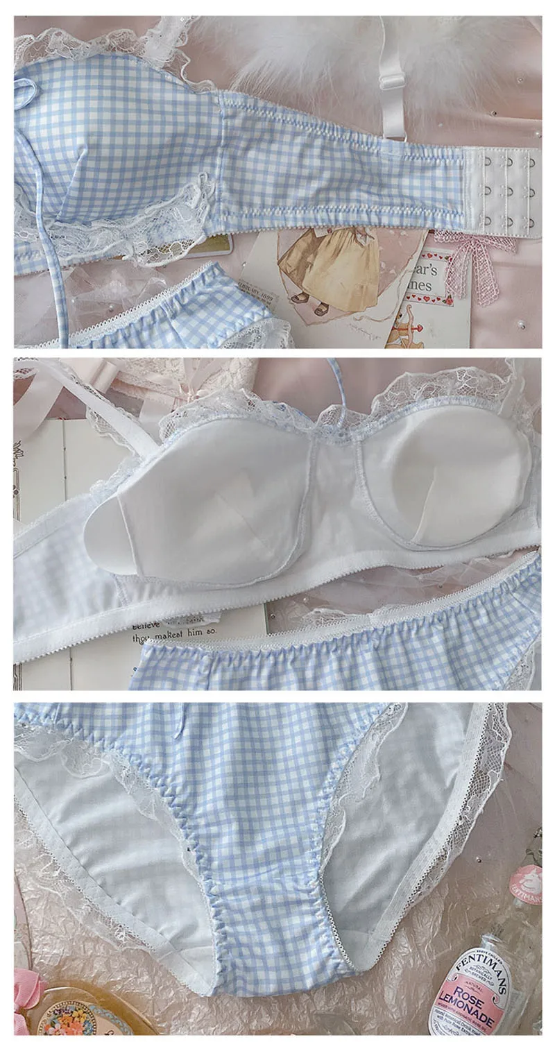 Harajuku Kawaii Fashion Pastel Gingham Lingerie Set
