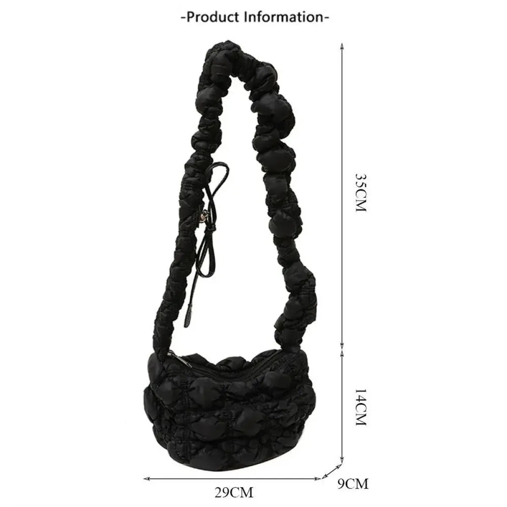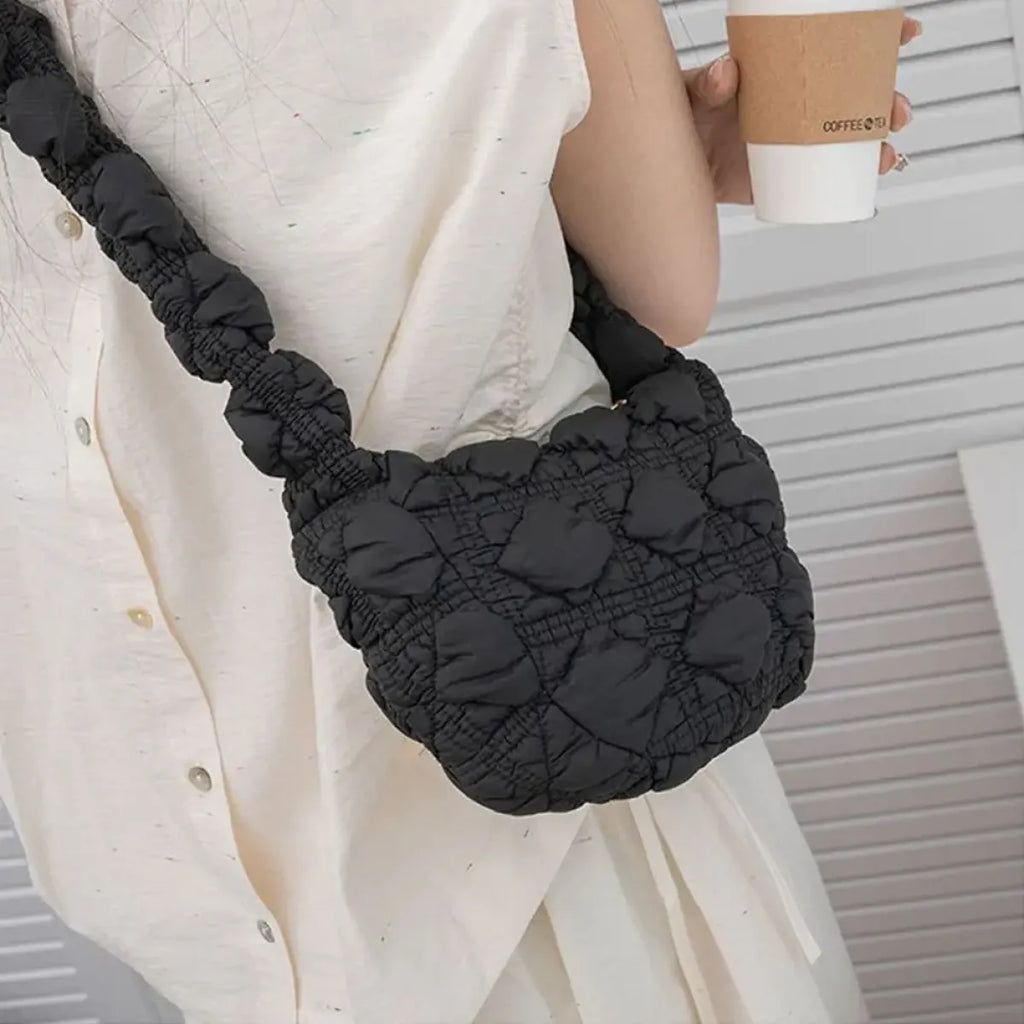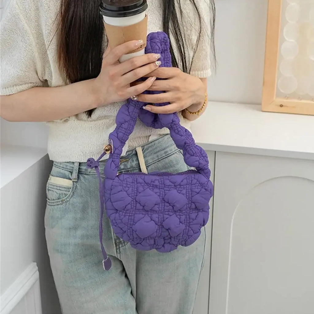 This Harajuku Quilted Shoulder Bag turns heads with its ultra-cute puffed quilting and braided handle, giving you the plush aesthetic of a pillow with the bold attitude of Harajuku street fashion.