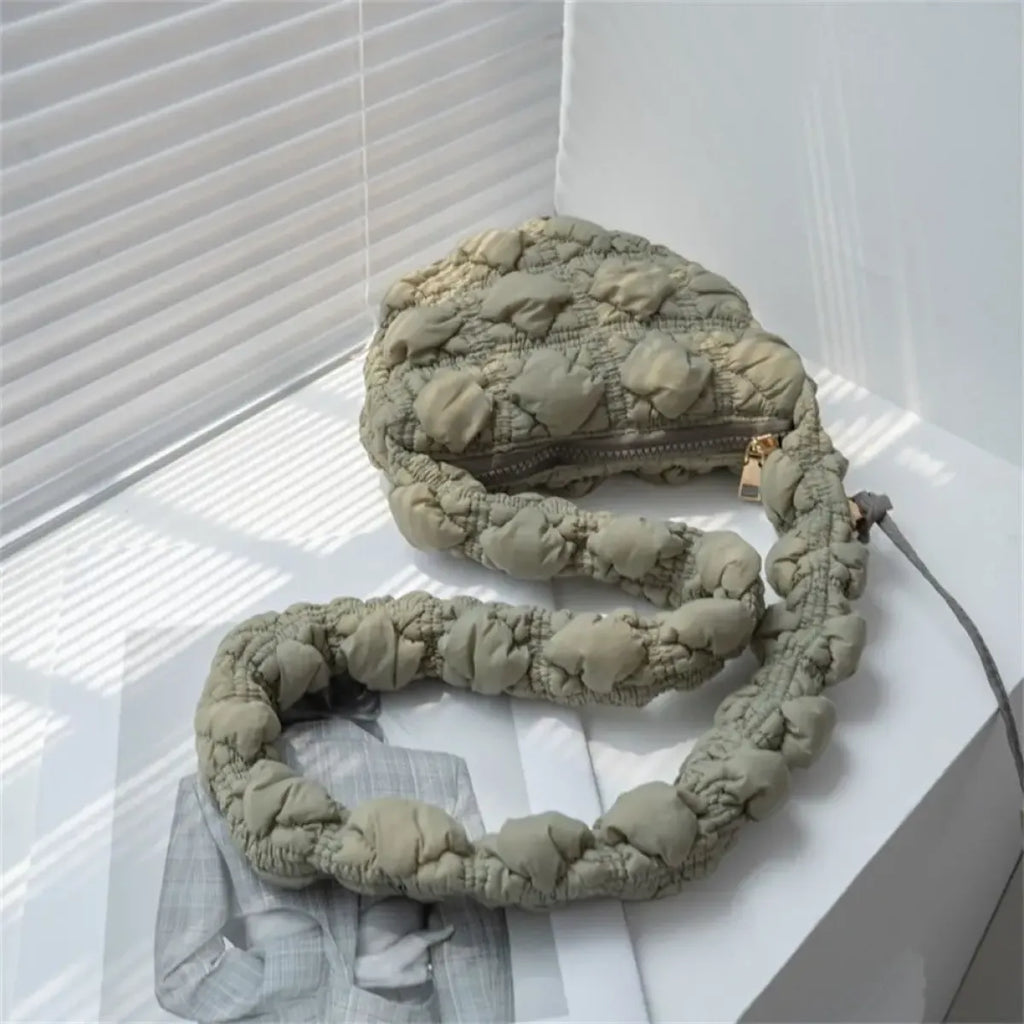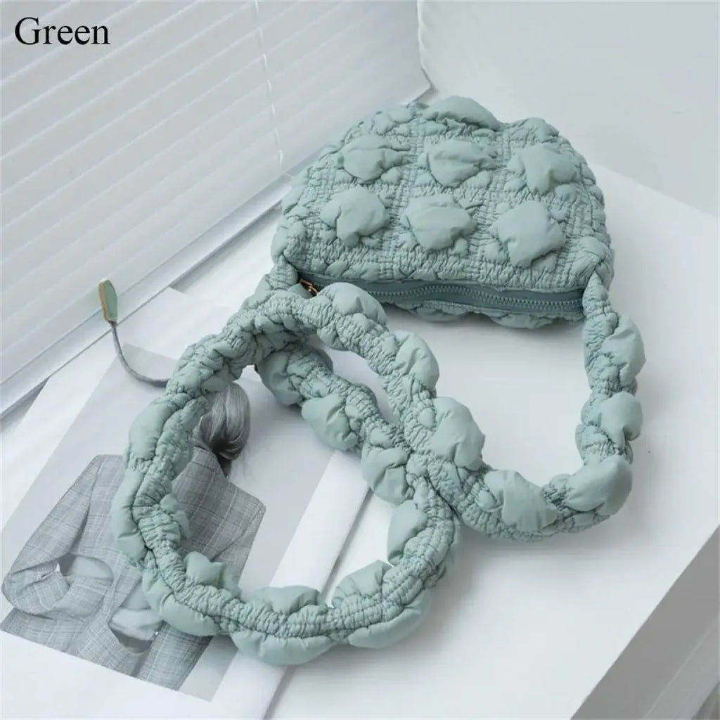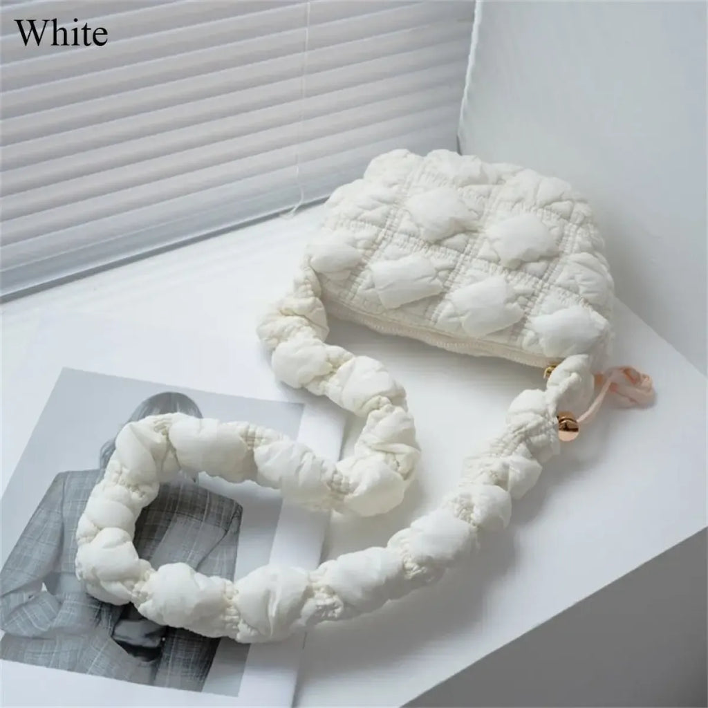 This Harajuku Quilted Shoulder Bag turns heads with its ultra-cute puffed quilting and braided handle, giving you the plush aesthetic of a pillow with the bold attitude of Harajuku street fashion.