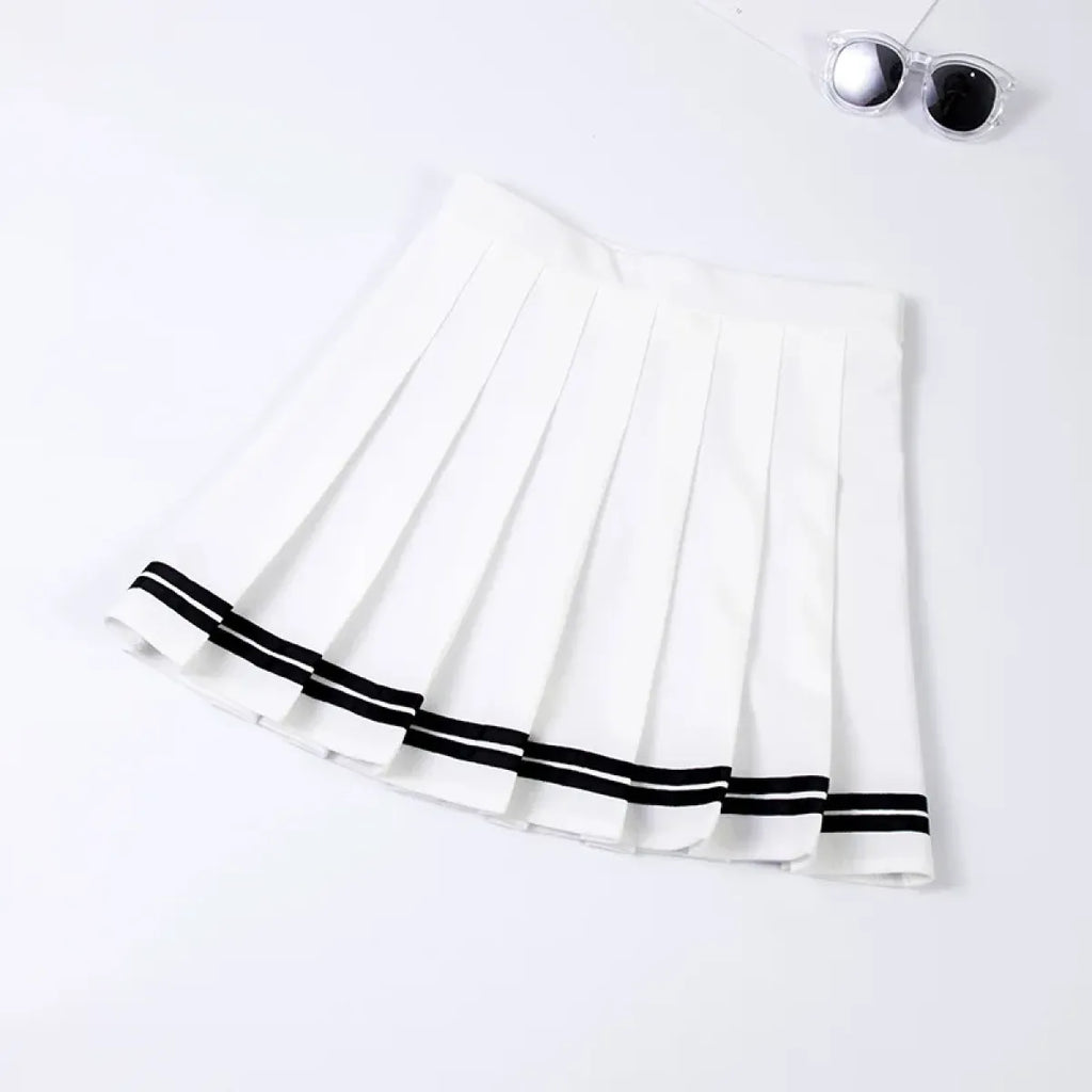 Whether you're channeling your inner anime protagonist or just vibing with pastel academia, this pleated tennis skirt brings instant kawaii energy to your wardrobe. With its breezy length and eye-catching stripe detail, it’s a staple piece for year-round styling. Don't miss out—your wardrobe MVP is waiting. Only at Kawaii Stop.