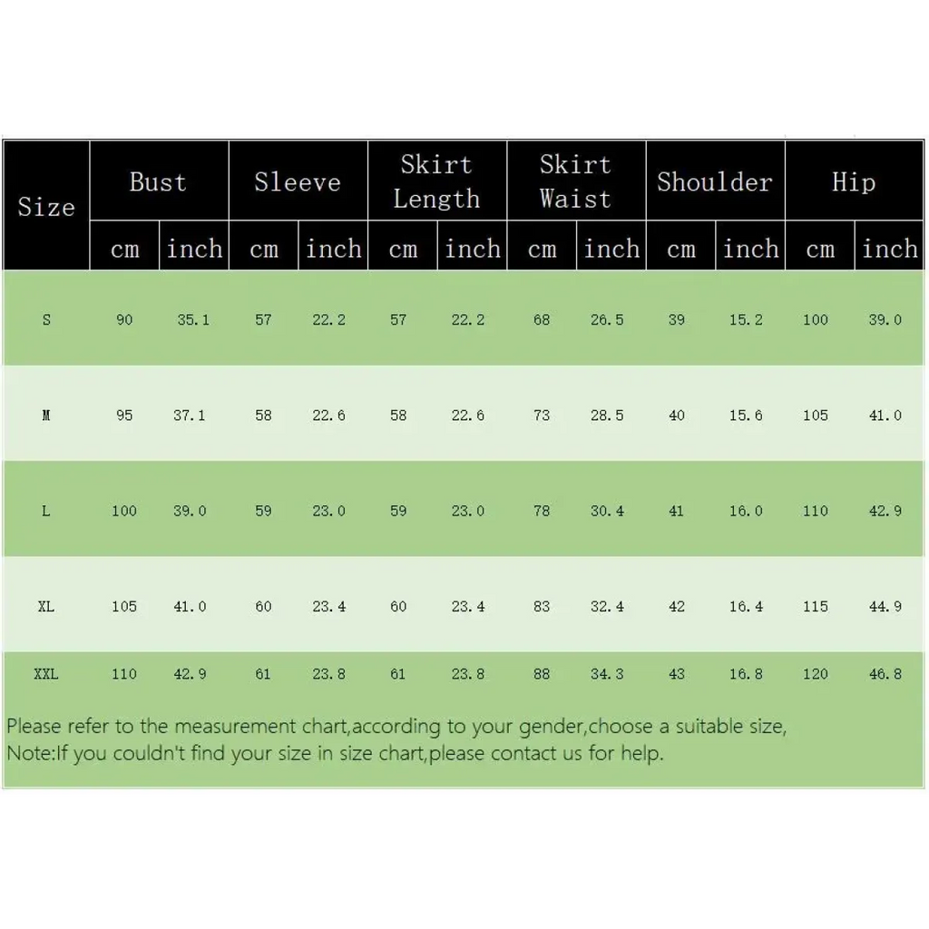 Size | Skirt Waist (cm/inch) | Skirt Length (cm/inch) | Sleeve Length (cm/inch) | Hip (cm/inch) |