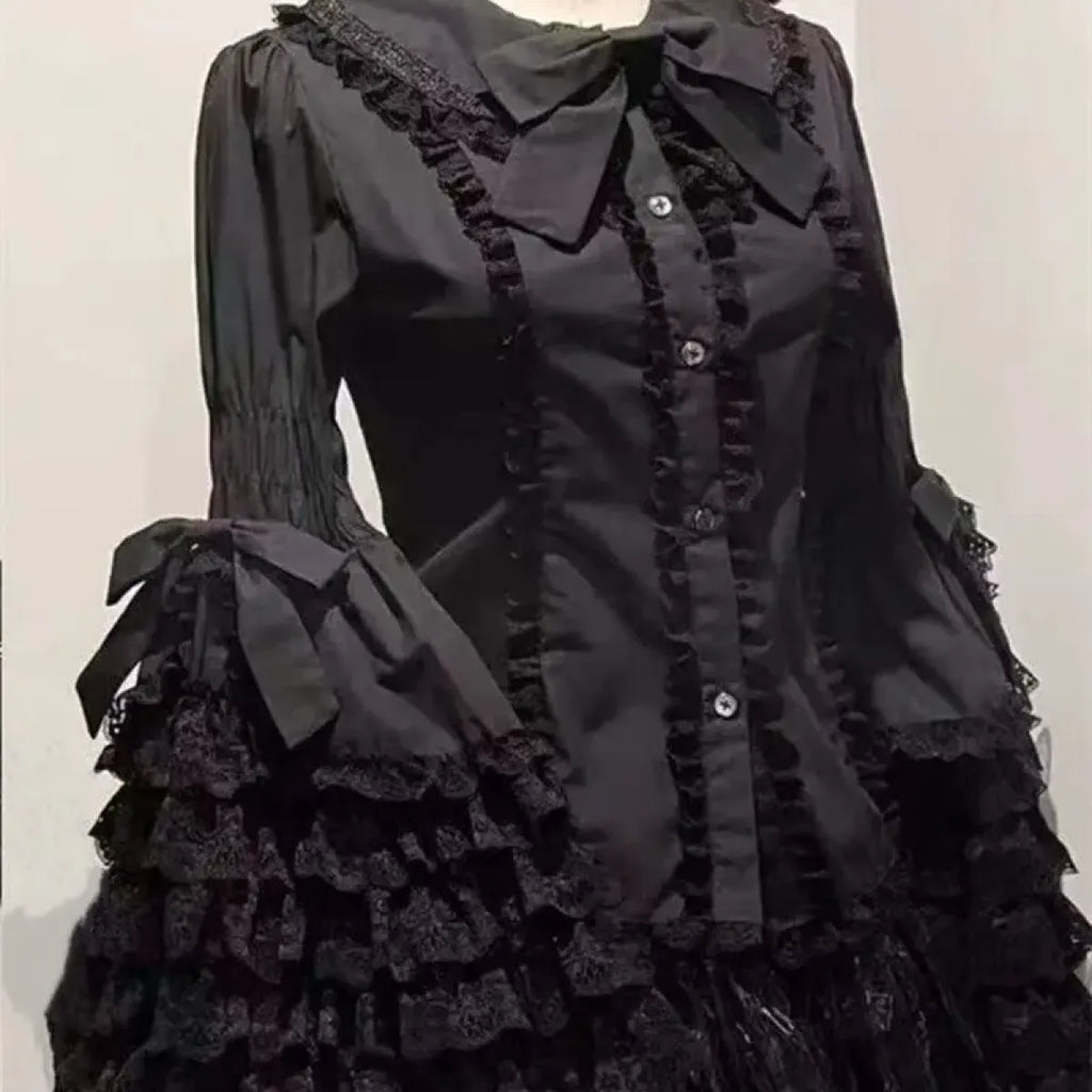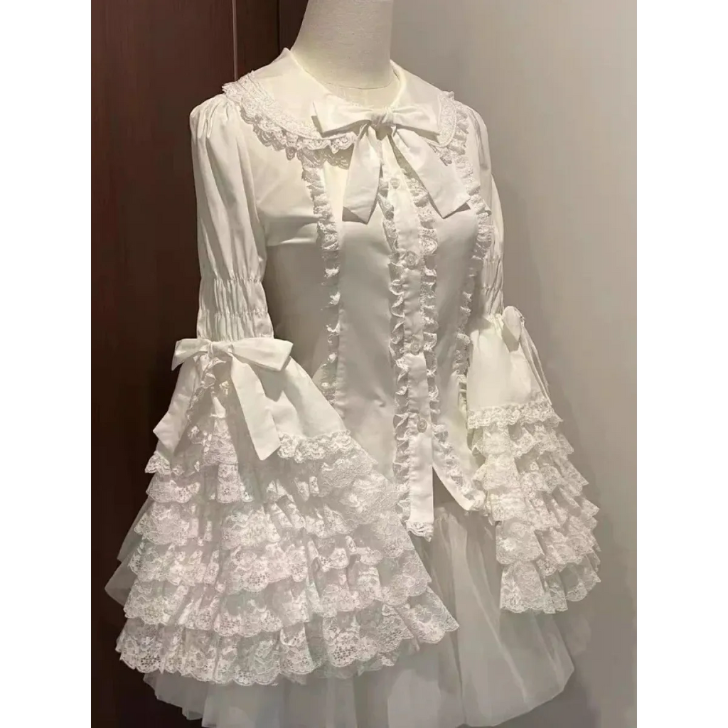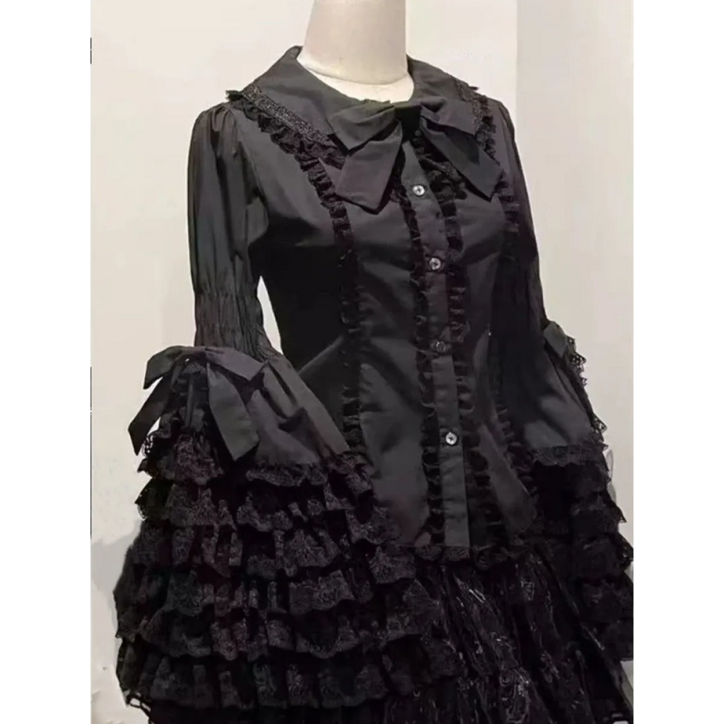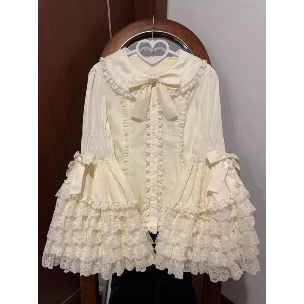 This dreamy Lolita blouse wraps you in layers of lace and charm. With its oversized Peter Pan collar, dainty bow tie, and cascading flare sleeves, it's made for those who adore vintage-inspired elegance. Whether paired with a corset dress or worn on its own, itβs a statement piece that whispers whimsy.