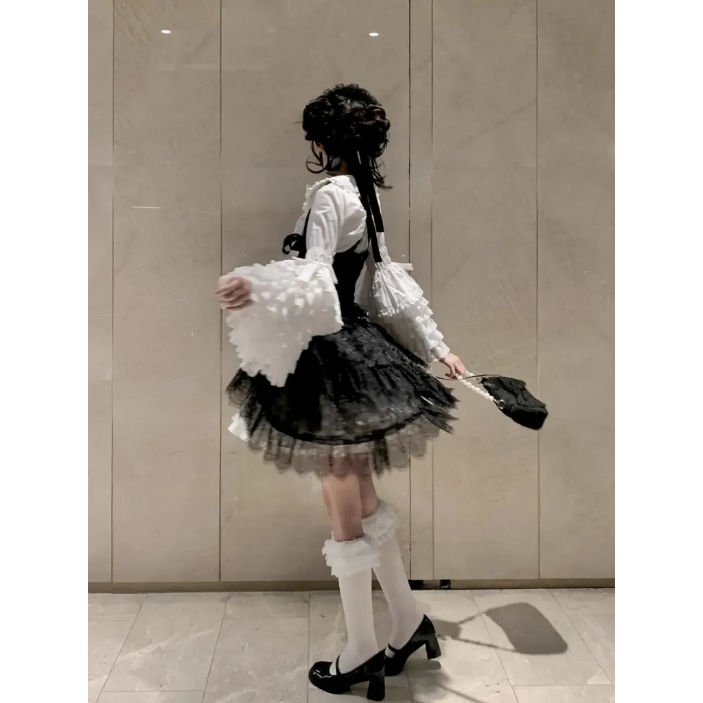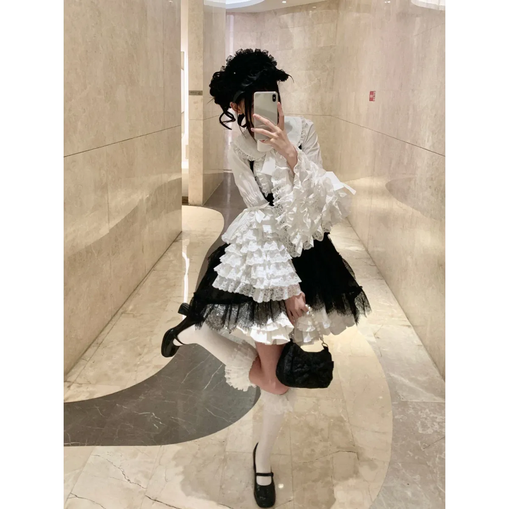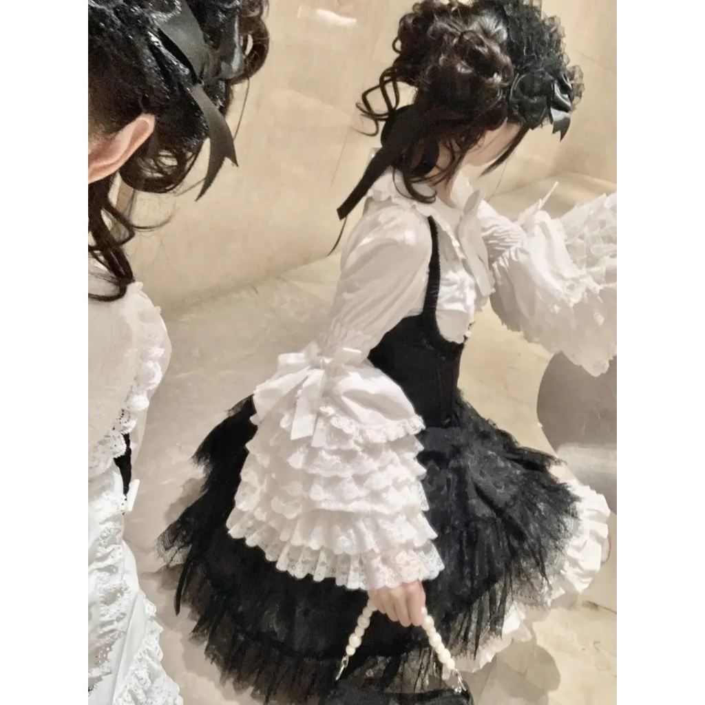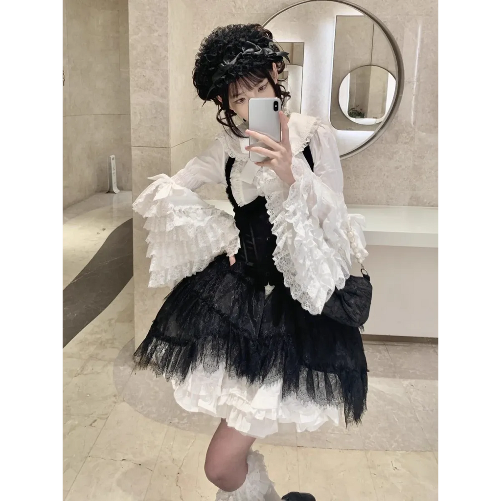 This dreamy Lolita blouse wraps you in layers of lace and charm. With its oversized Peter Pan collar, dainty bow tie, and cascading flare sleeves, it's made for those who adore vintage-inspired elegance. Whether paired with a corset dress or worn on its own, itβs a statement piece that whispers whimsy.