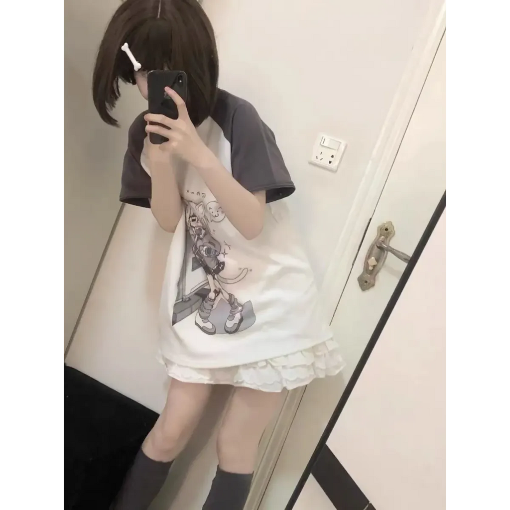 Kawaii Y2K Harajuku Top – Detachable Sleeve Anime Tee