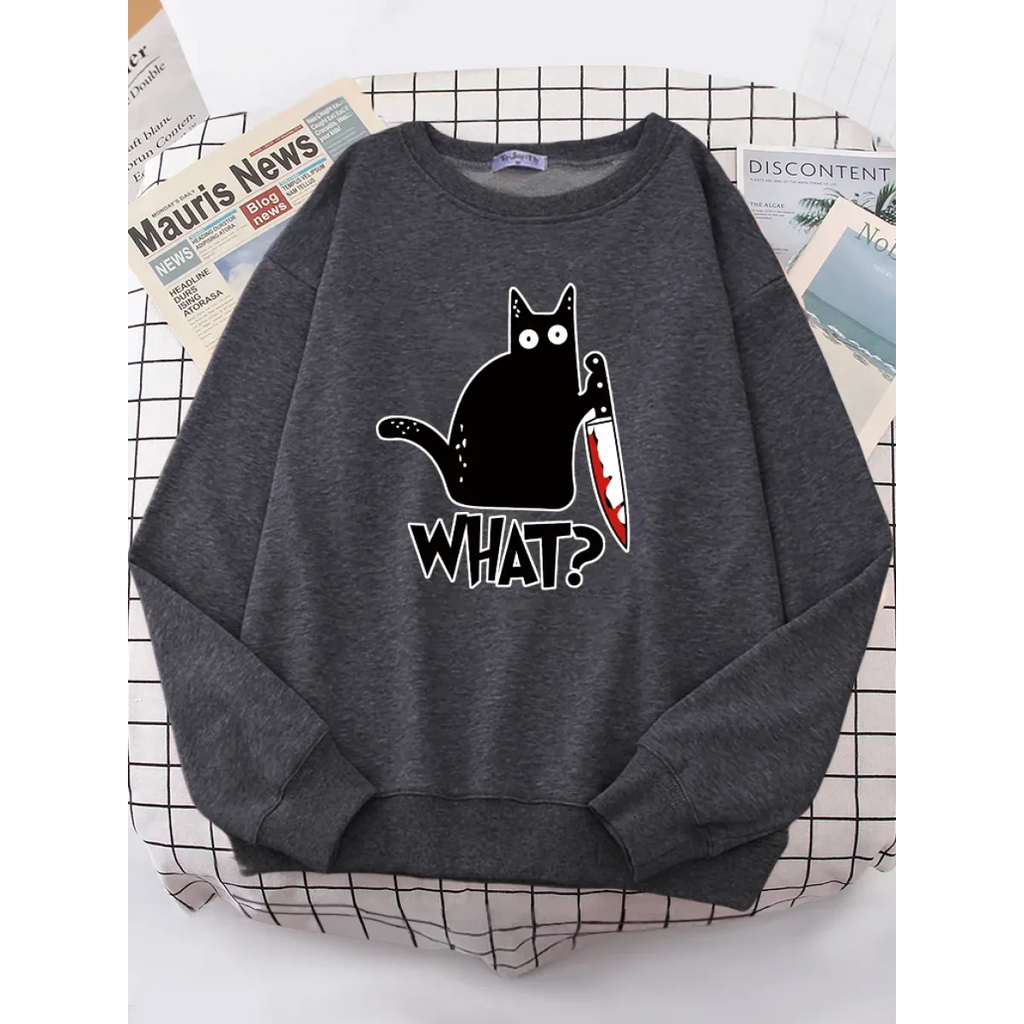 Kitty Say "What?" Sweatshirt - Harajuku Casual Hoody