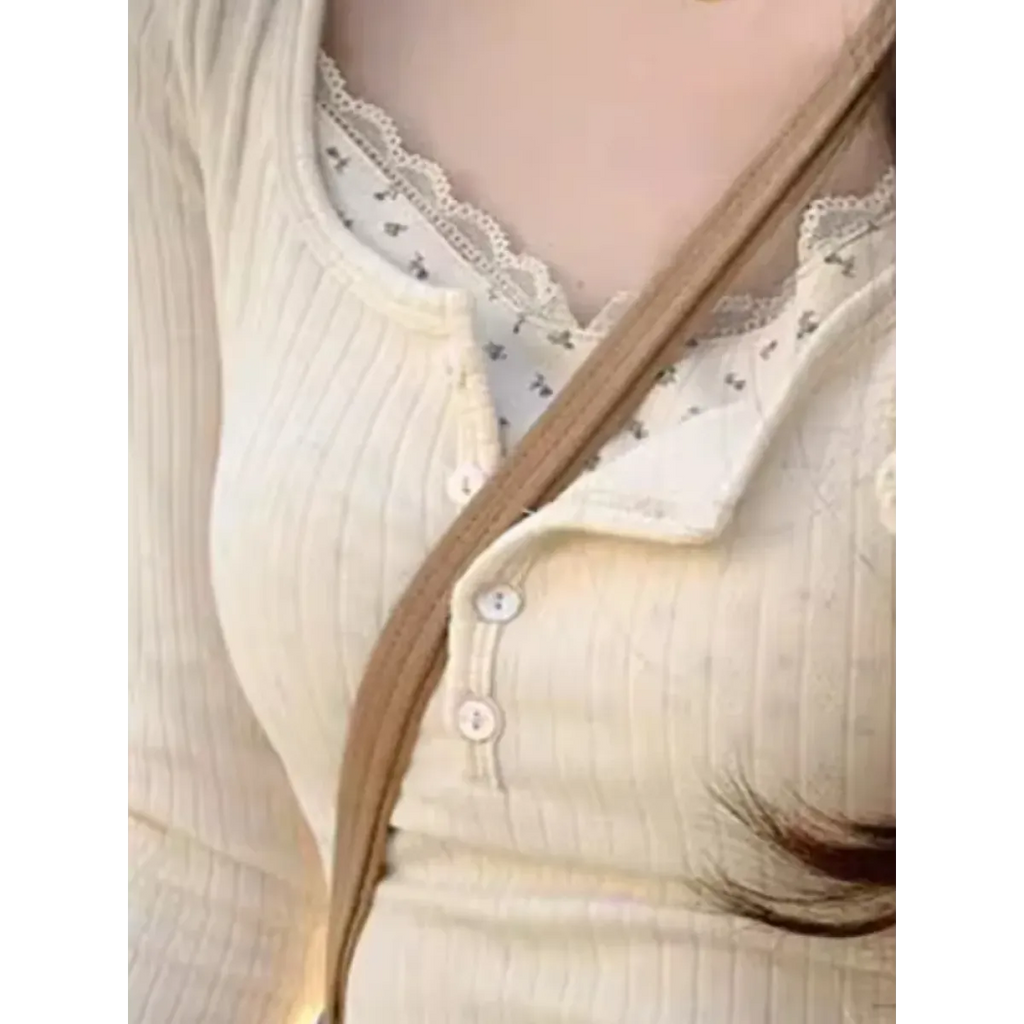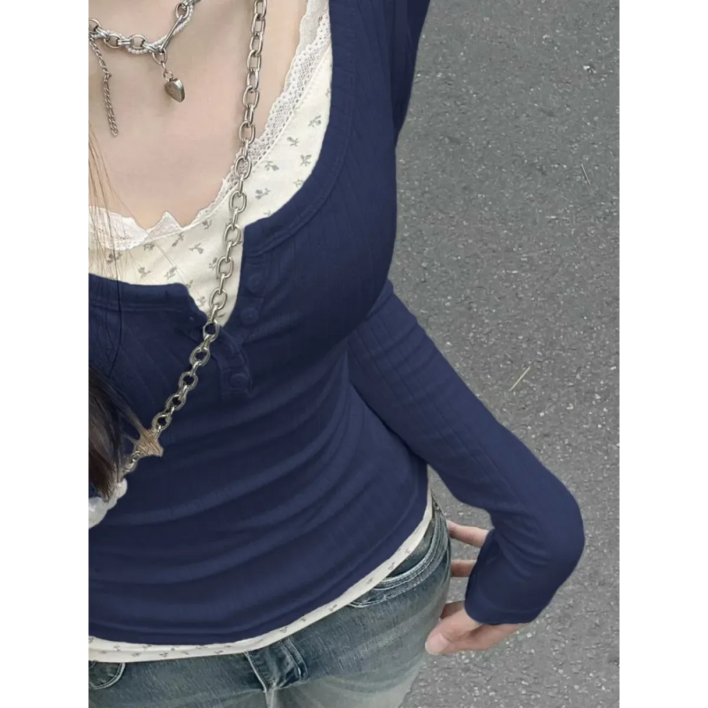Layered Lace Trim Top – Y2K Harajuku Slim Fit Tee