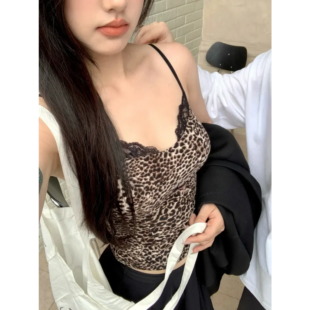 Leopard Print Lace Trim Cami – Y2K Aesthetic Vintage Tank Top