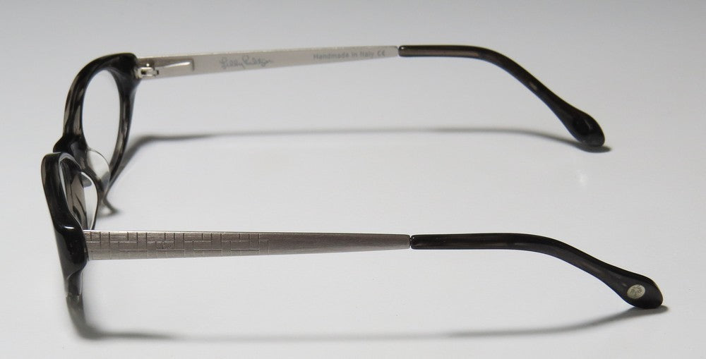 The frame is sold with demo lenses that have a logo stamped on them in ink. The frame can be fitted with real lenses at most optical stores. This frame provides comfortable fit and flatters a variety of face shapes. These eyeglasses are made of metal and high quality, durable acetate plastic. The frame has spring hinges. Spring hinge temples prevent you from stretching the fit of your glasses and ensure that they remain intact and not become loose or out of shape. Original case is included.