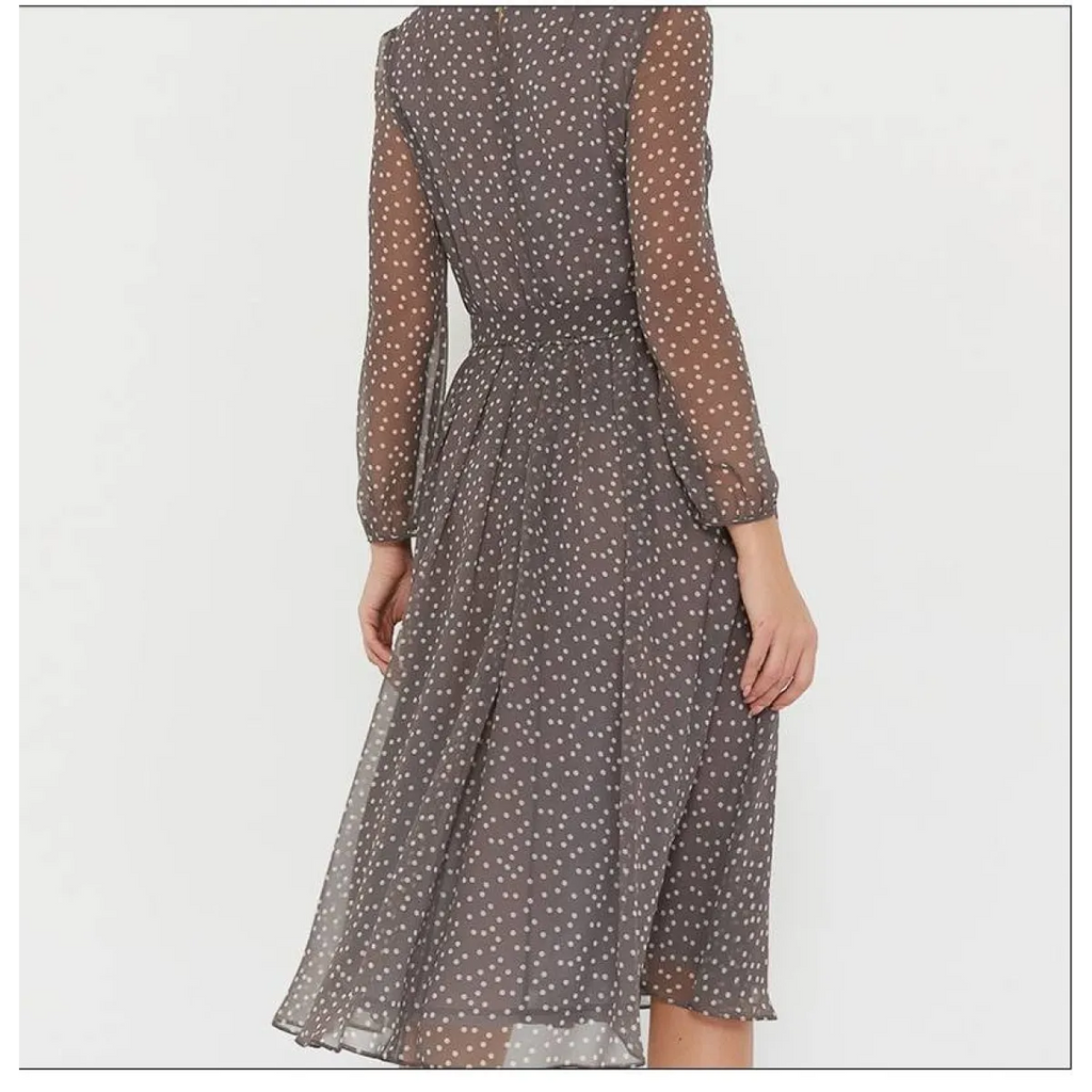 Our manufacturing procedures and production resources meet the highest industry standards, thus, assuring the top quality of the Long-Sleeved Polka Dot Dress.