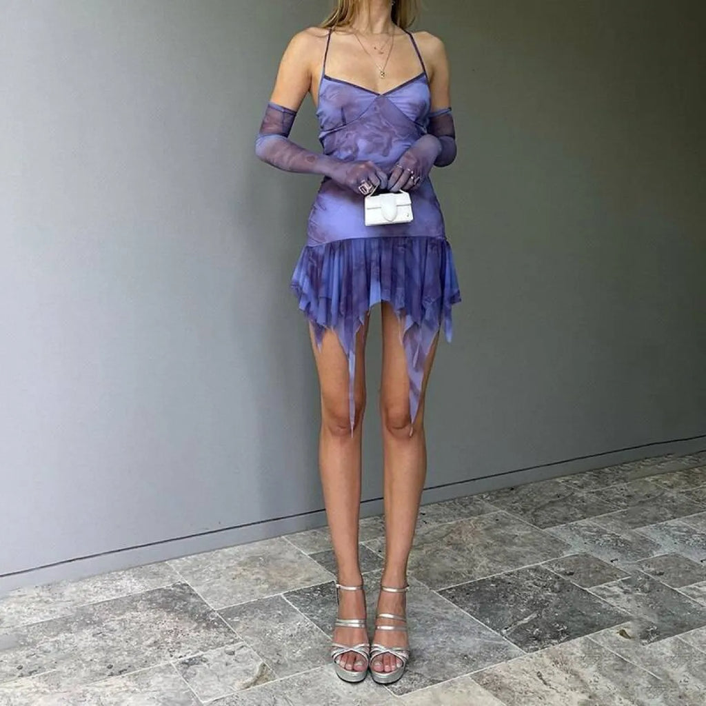 MESH SLIP MINI DRESS SIZING AND PACKAGING INFO: