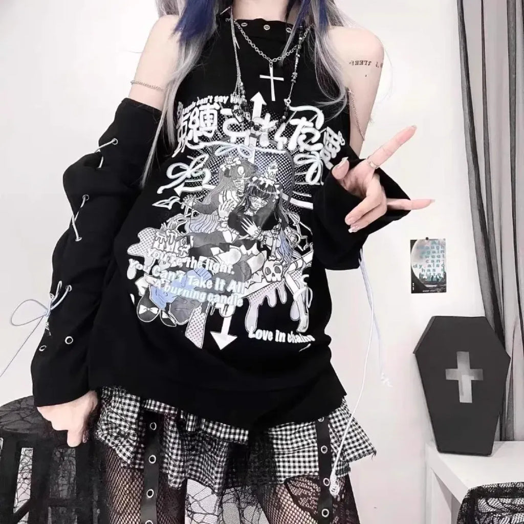 Off-Shoulder Gothic Harajuku Shirt – Y2K Punk Aesthetic