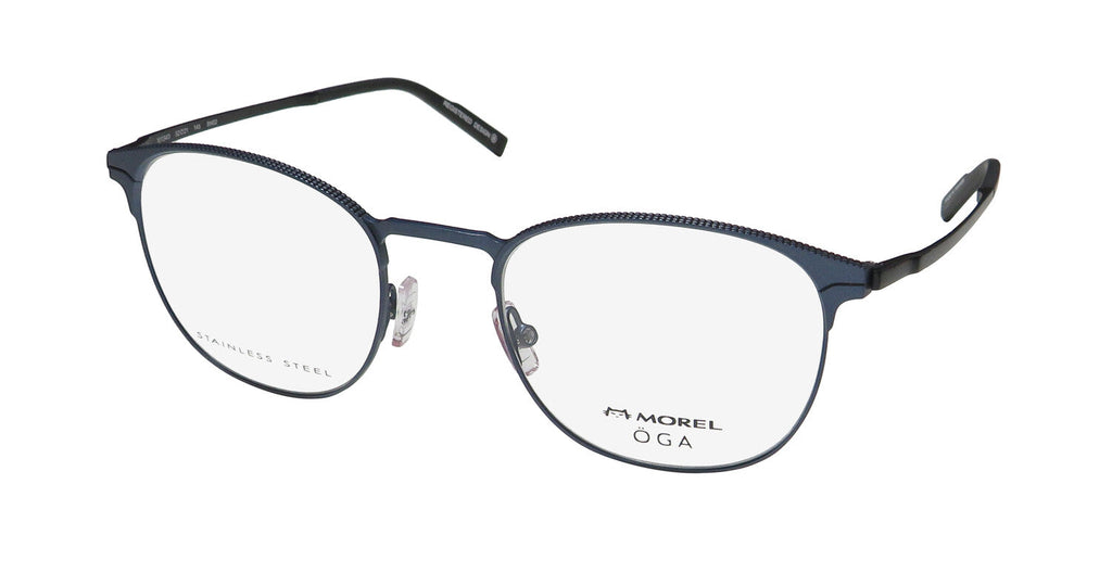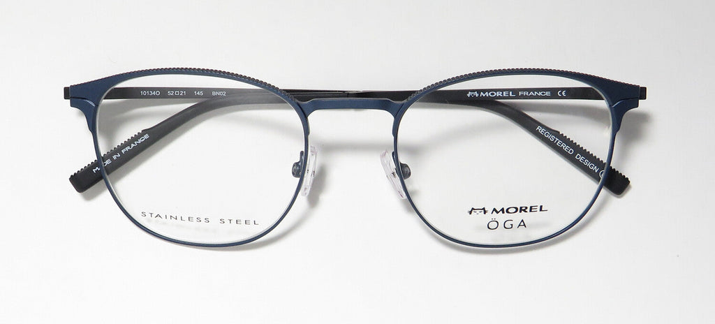 The frame is sold with demo lenses that have a logo stamped on them in ink. The frame can be fitted with real lenses at most optical stores. This frame provides comfortable fit and flatters a variety of face shapes. These eyeglasses are made of corrosion resistant and strong metal. Original case is included. The glasses are made in France.