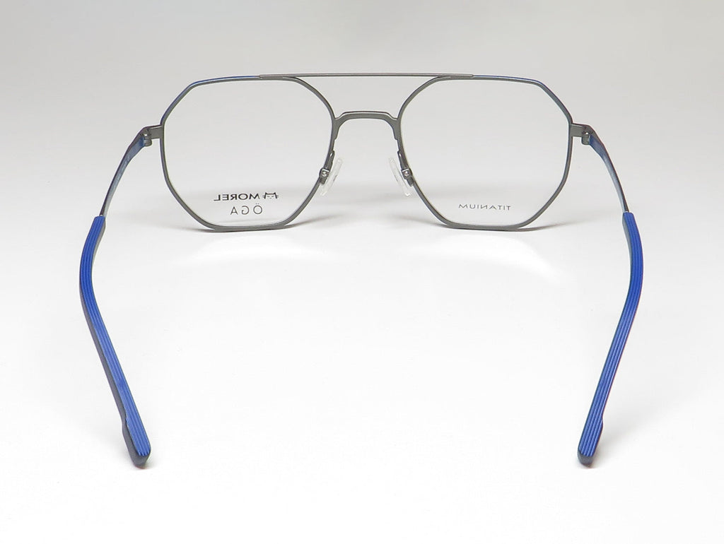 The frame is sold with demo lenses that have a logo stamped on them in ink. The frame can be fitted with real lenses at most optical stores. This frame provides comfortable fit and flatters a variety of face shapes. The hardware parts of the eyeglasses are made of titanium. This material is known for it's durability, light weight and corrosion resistance. This metal is also hypoallergenic. It is recommended by eye doctors for people with sensitive skin who otherwise might be allergic to standard stainless steel metal frames. Original case is included. The glasses are made in France.