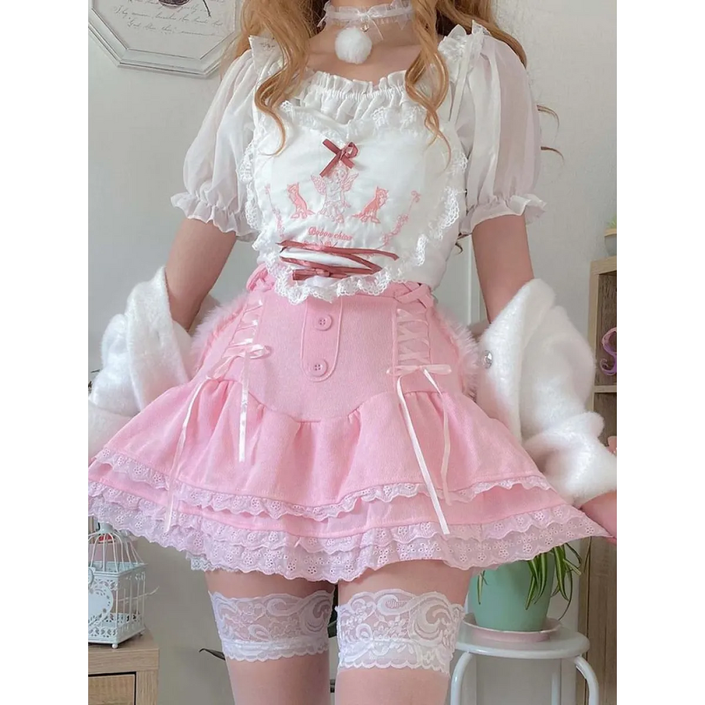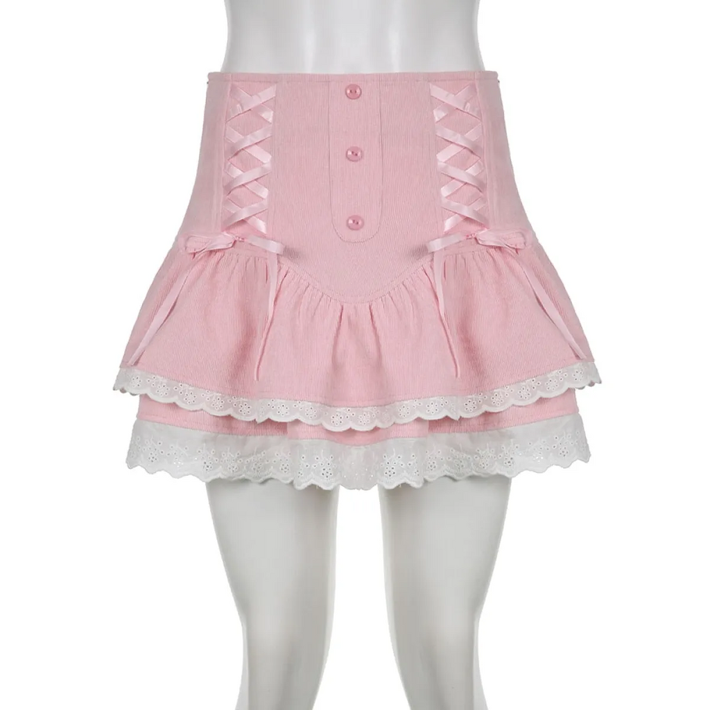 This kawaii shop takes pride in offering the best quality goods including Pink Aesthetic Mini Skirt with Cascading Ruffle and A-line - Lace-up Buttons for a Kawaii Look! Our suppliers are rated for quality, proven, & leading experts in Japan Fashion and Harajuku clothing for this shop. Our goal is to bring you the best price on the best quality items in this kawaii shop.
