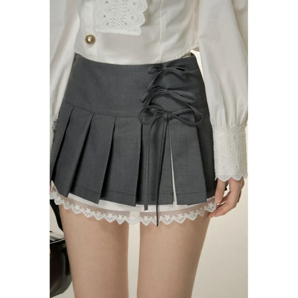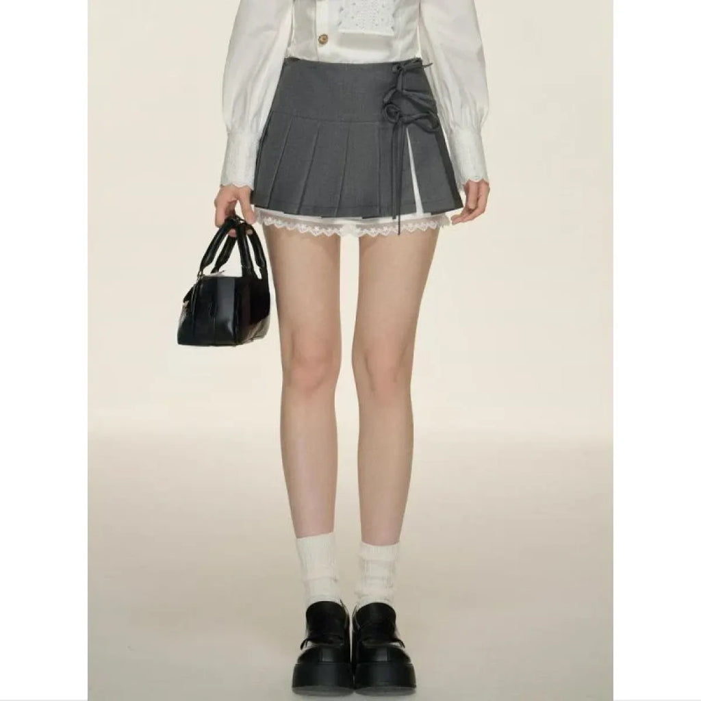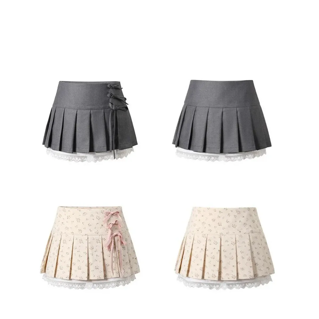 Pleated Lace Trim Mini Skirt – Kawaii Y2K Sweet Harajuku