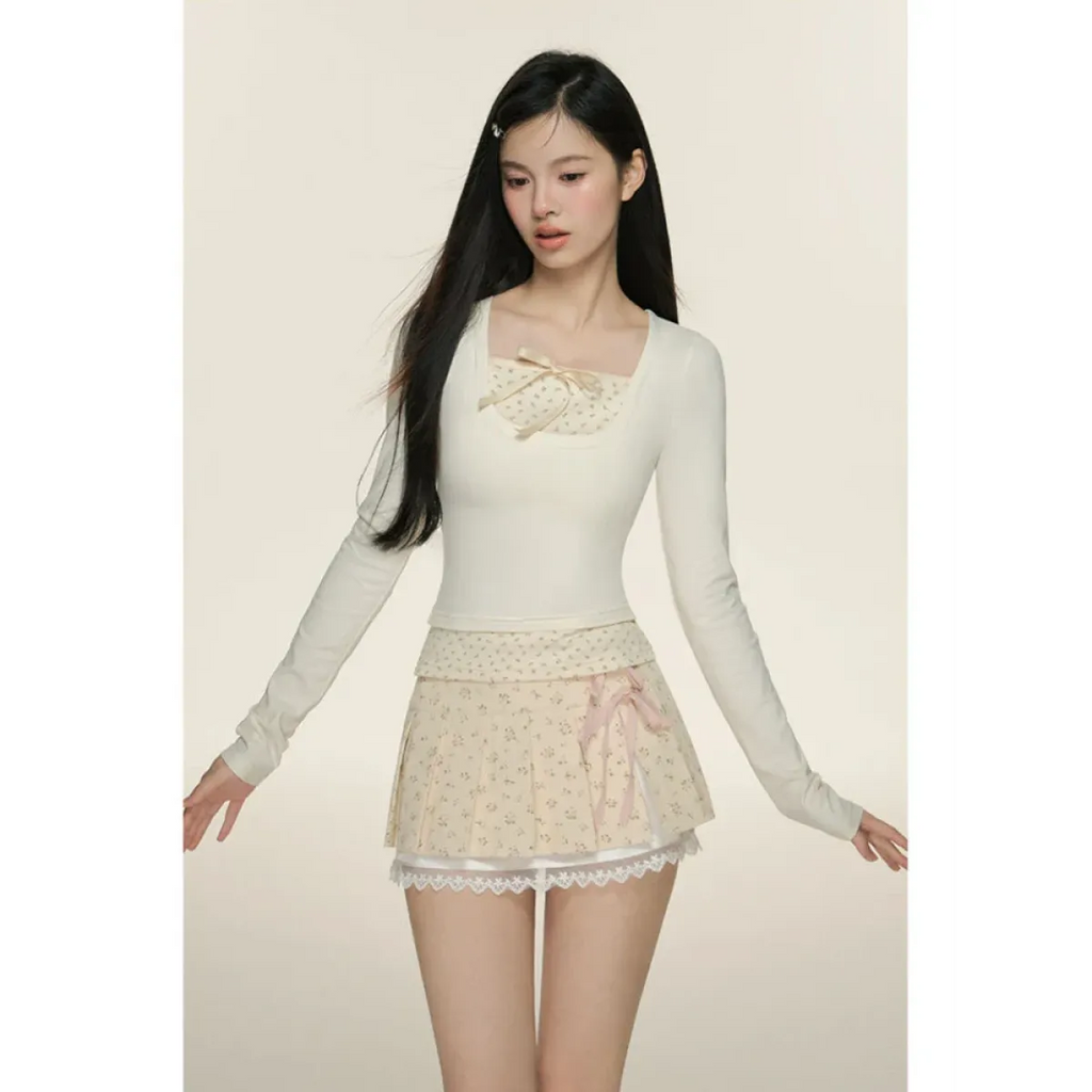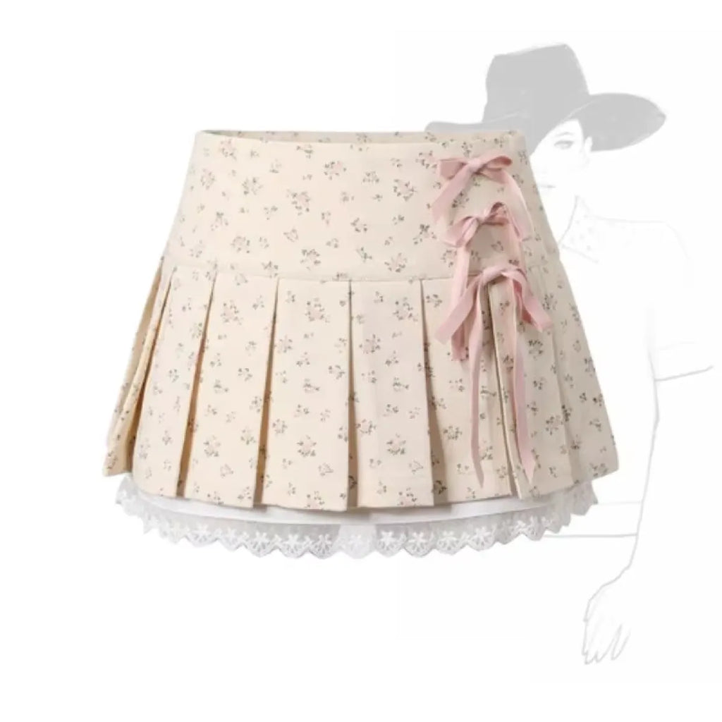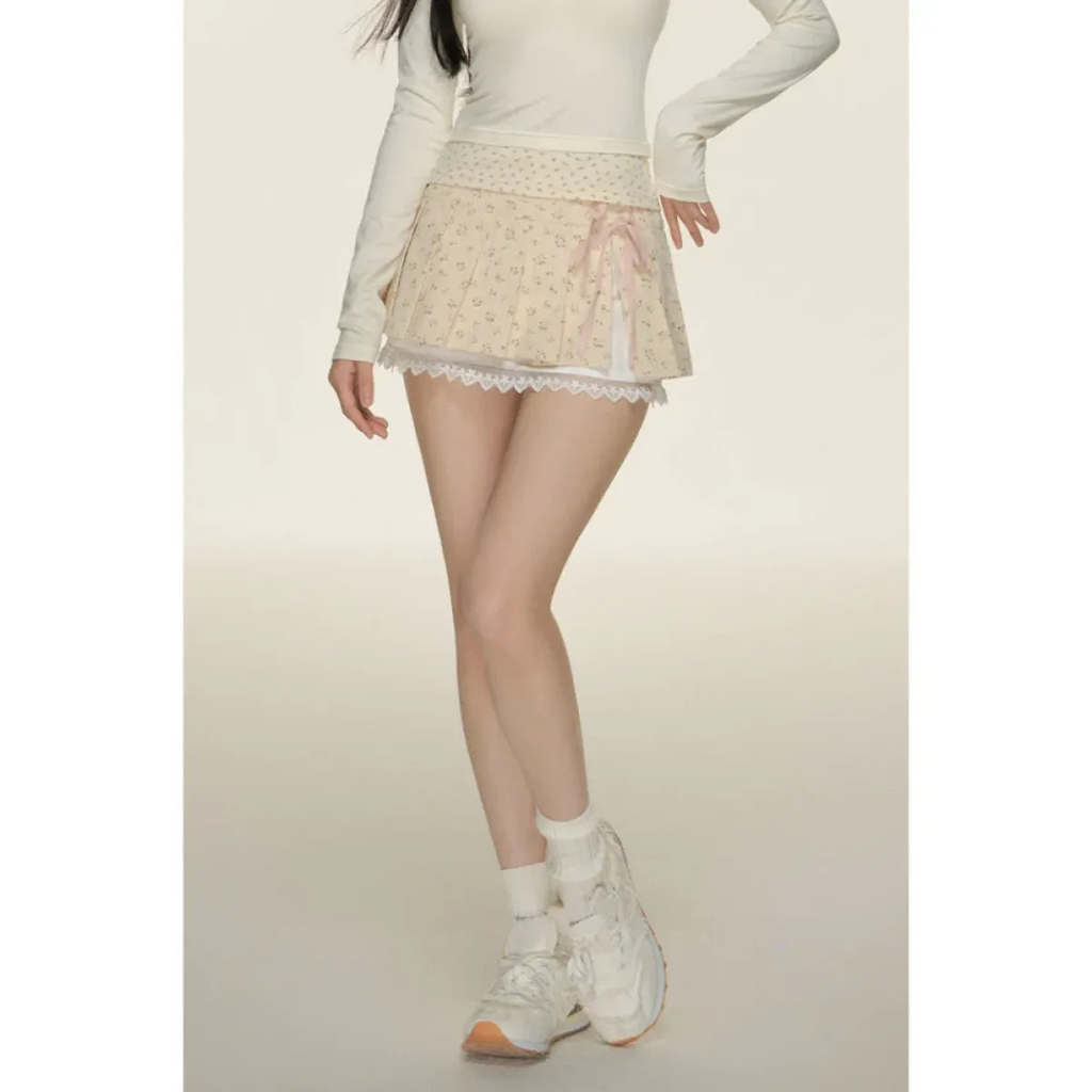 Pleated Lace Trim Mini Skirt – Kawaii Y2K Sweet Harajuku