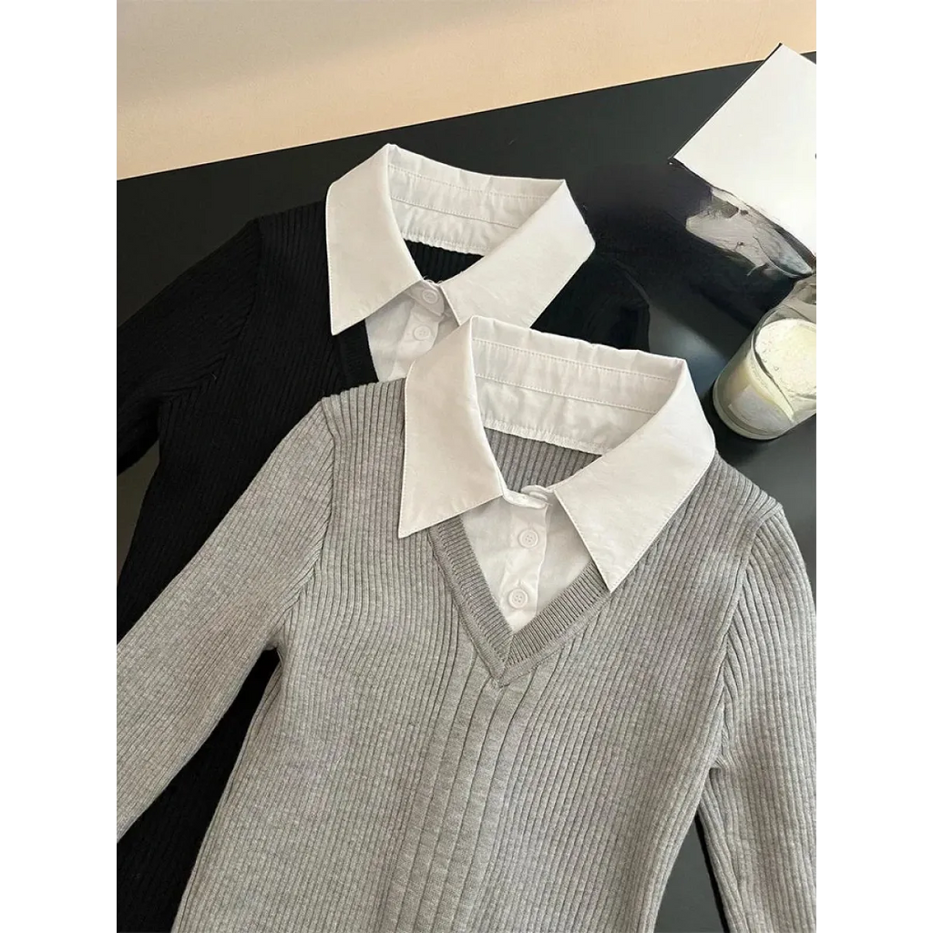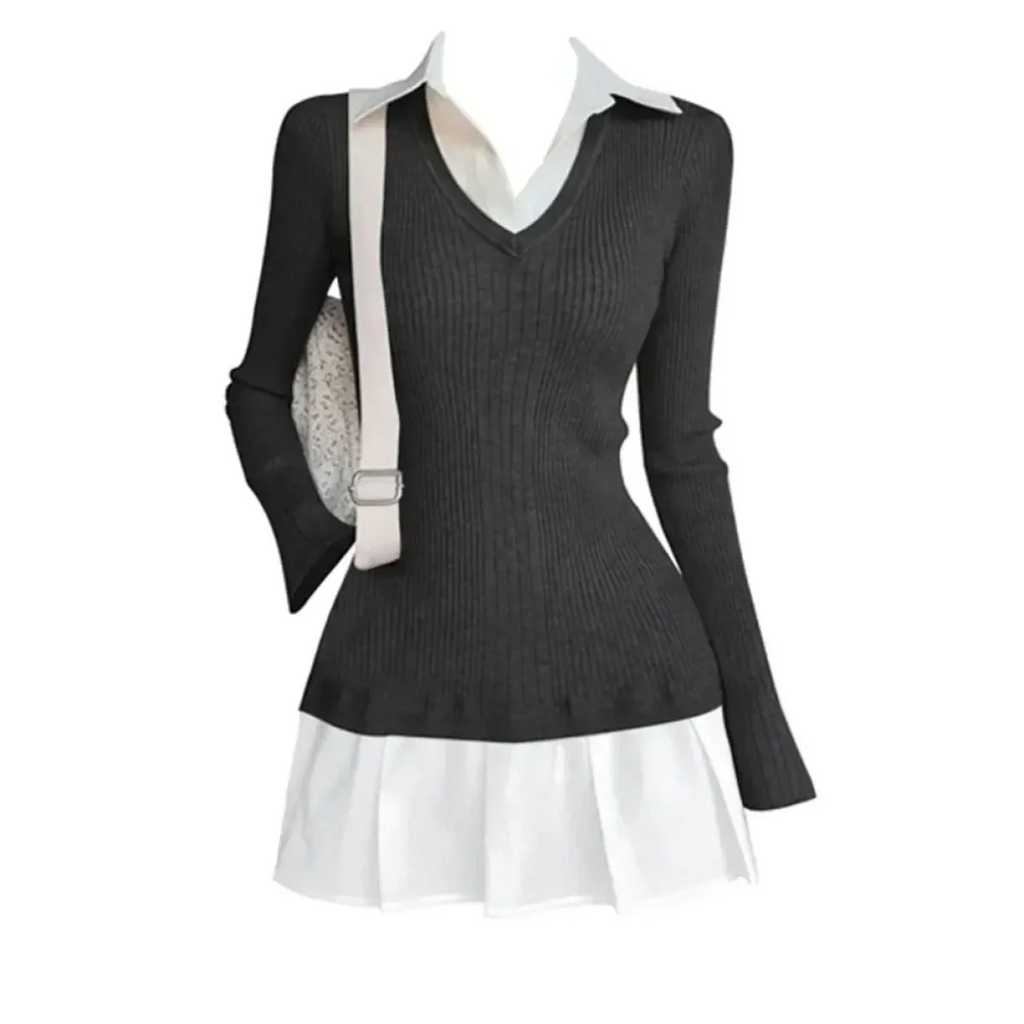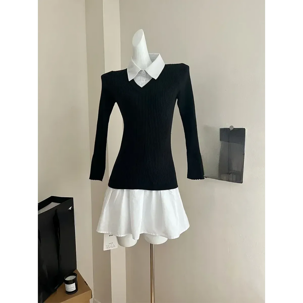 Preppy Knitted Mini Dress – Y2K Gyaru Fake Two-Piece