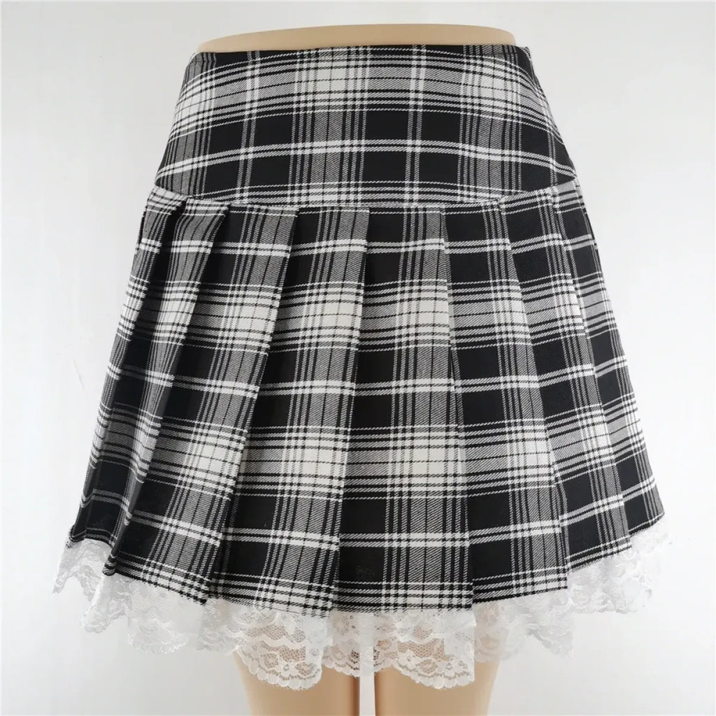 Red Black Plaid Lace Gothic Punk Skirt – Pleated Y2K Harajuku Style