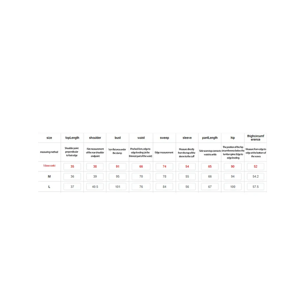 Size Top Length (cm) Sweep (cm) Pant Length (cm) Hip (cm)