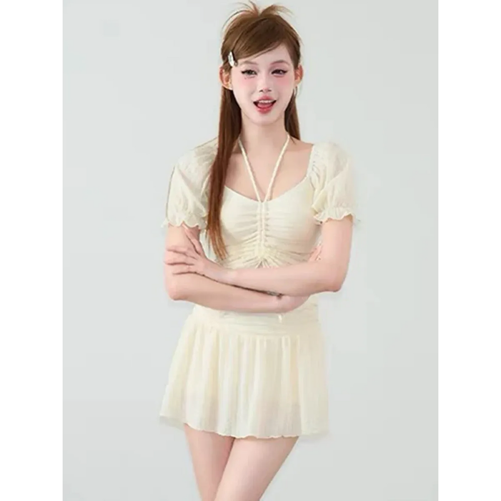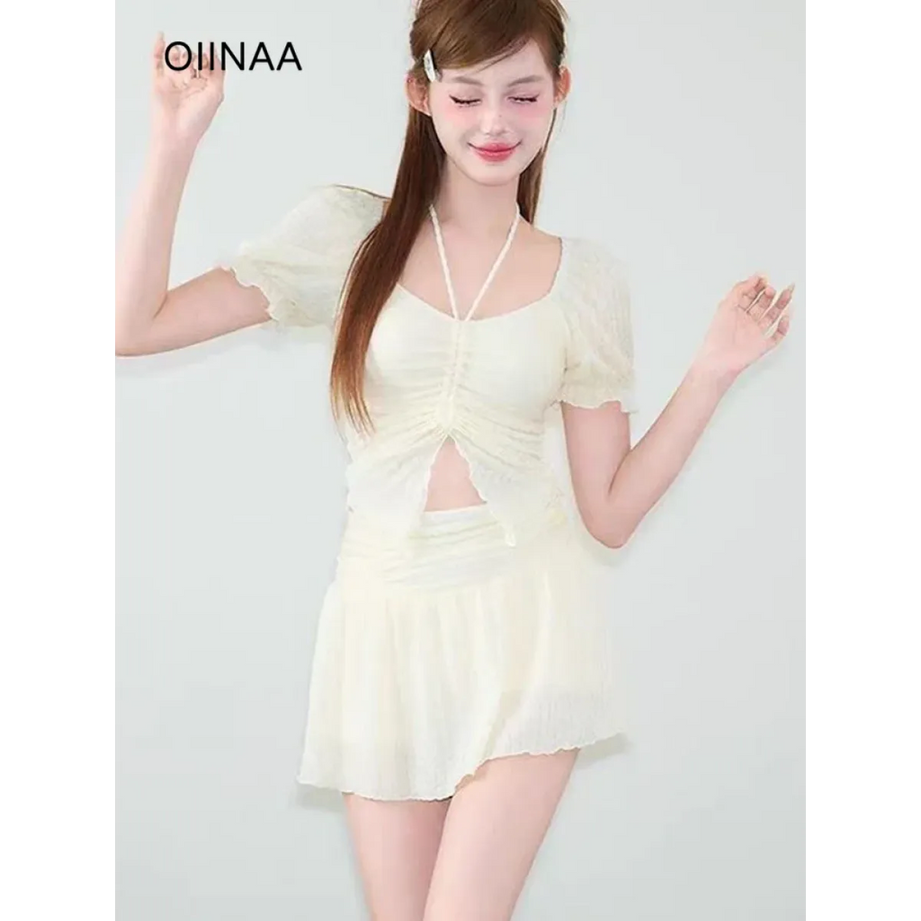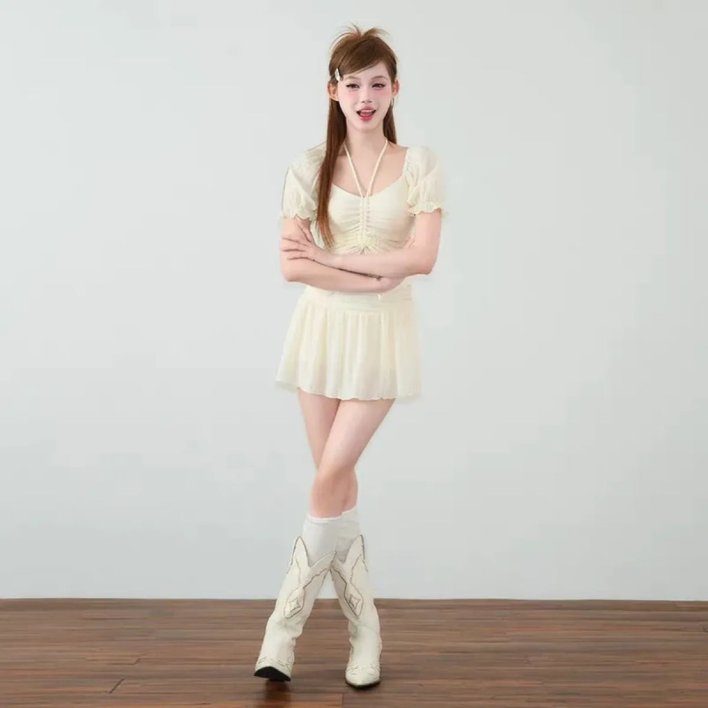 Pair with platform sandals, a straw hat, and a pastel parasol for a soft girl beach look or layer with oversized sunnies and pearl hair clips for a modern mermaidcore aesthetic.