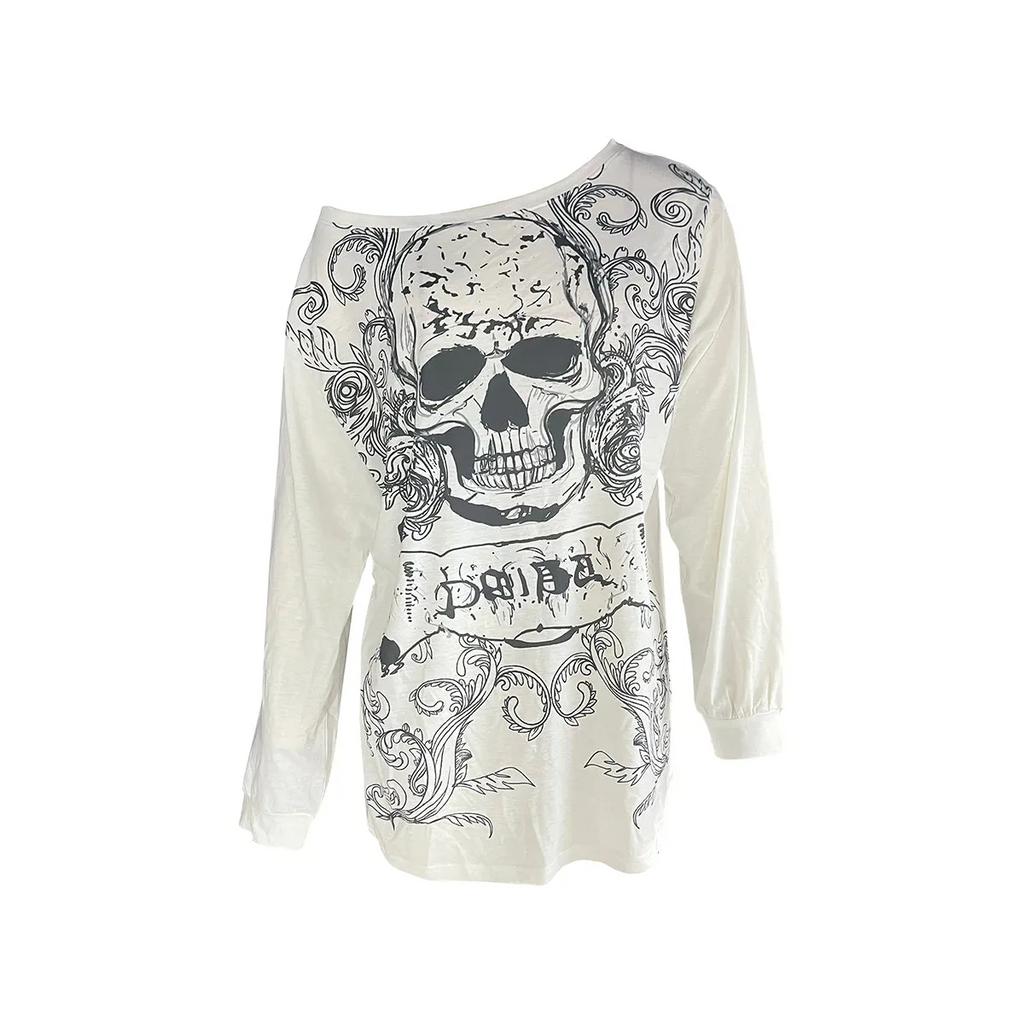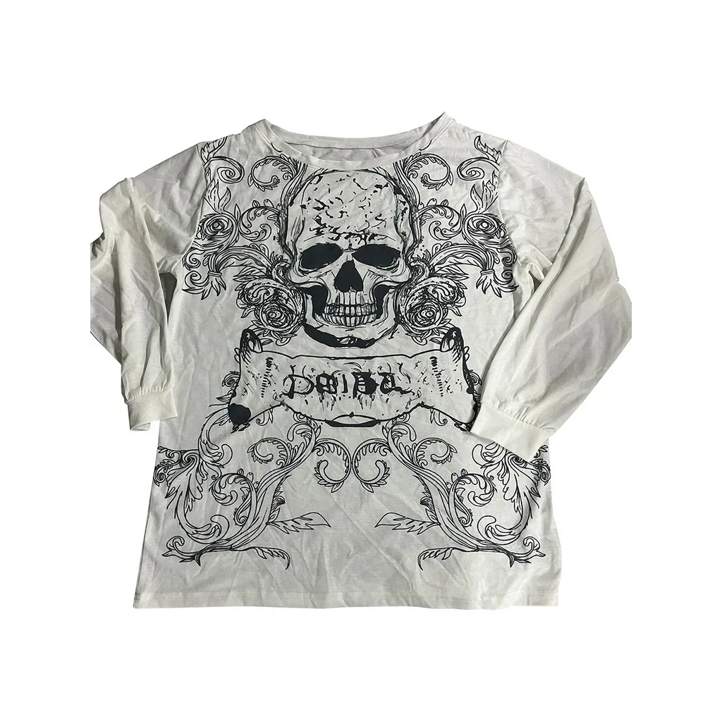 Skull Print Long Sleeve T-Shirt – Grunge Y2K Punk Pullover Top