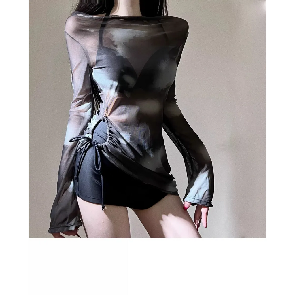 Tie-Dye Bikini Set – Korean Mesh Cover-Up with Drawstring Skirt