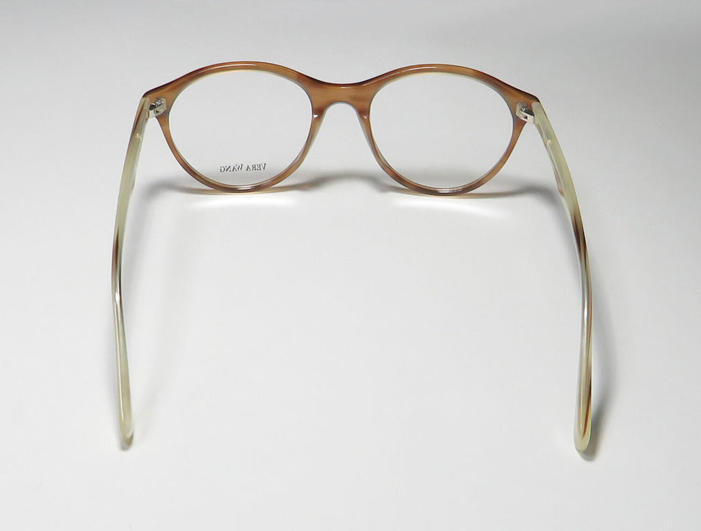 The frame is sold with demo lenses that have a logo stamped on them in ink. The frame can be fitted with real lenses at most optical stores. This frame provides comfortable fit and flatters a variety of face shapes. These eyeglasses are crafted from high quality, durable premium acetate plastic. This frame is from the exclusive Luxe collection. This is a flagship line of eyewear manufactured by Vera Wang from highest quality materials. Original case is included.
