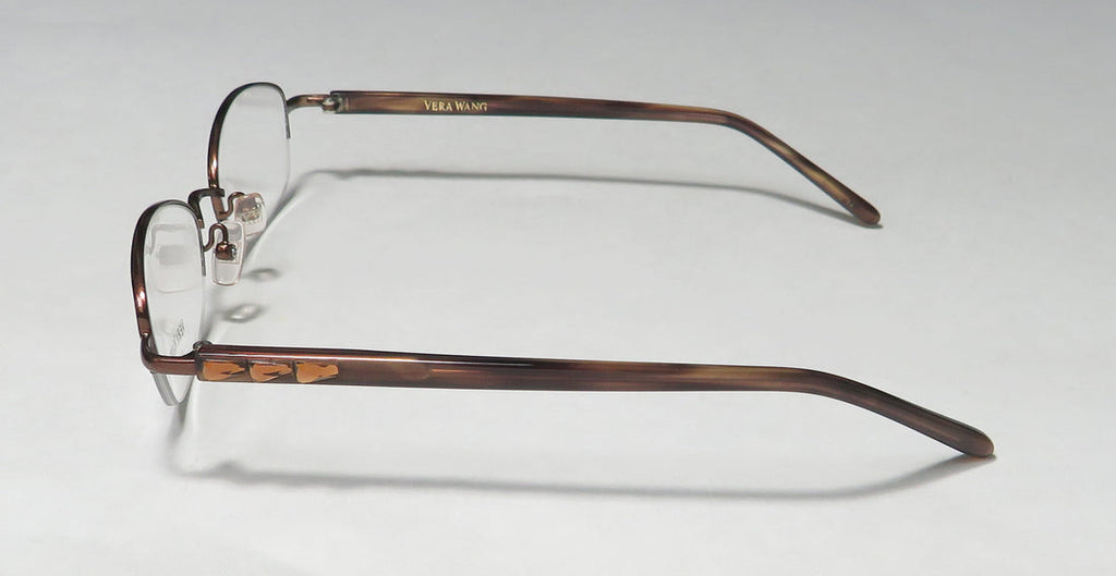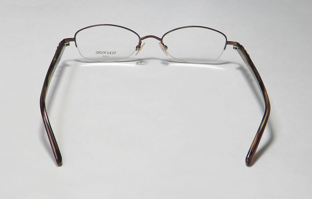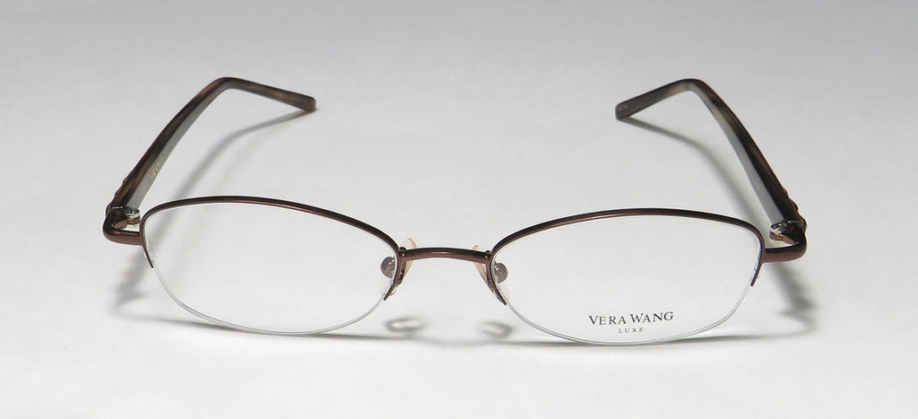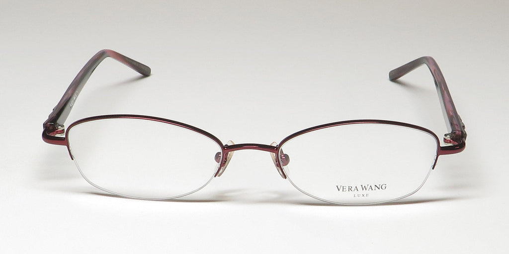 The frame is sold with demo lenses that have a logo stamped on them in ink. The frame can be fitted with real lenses at most optical stores. This frame provides comfortable fit and flatters a variety of face shapes. These eyeglasses are made of metal and high quality, durable acetate plastic. This frame is from the exclusive Luxe collection. This is a flagship line of eyewear manufactured by Vera Wang from highest quality materials. Original case is included. The glasses are made in China.
