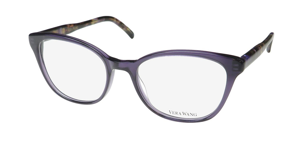 The frame is sold with demo lenses that have a logo stamped on them in ink. The frame can be fitted with real lenses at most optical stores. This frame provides comfortable fit and flatters a variety of face shapes. These eyeglasses are crafted from high quality, durable premium acetate plastic. This frame is from the exclusive Luxe collection. This is a flagship line of eyewear manufactured by Vera Wang from highest quality materials. Original case is included. The glasses are made in China.