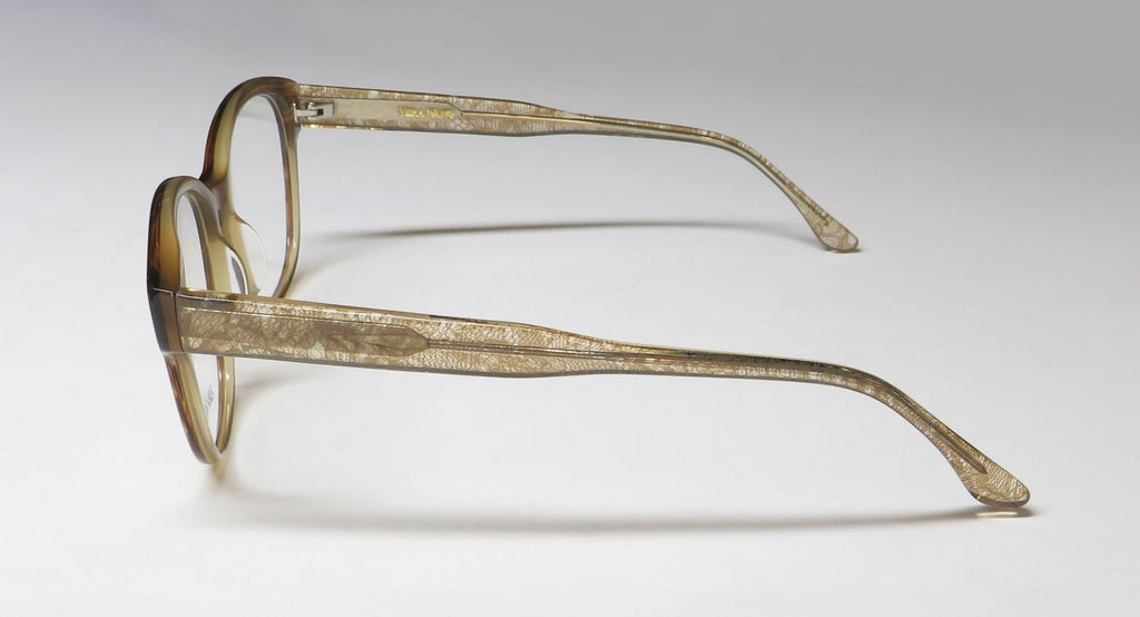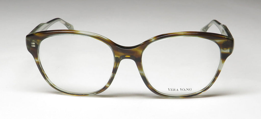 The frame is sold with demo lenses that have a logo stamped on them in ink. The frame can be fitted with real lenses at most optical stores. This frame provides comfortable fit and flatters a variety of face shapes. These eyeglasses are crafted from high quality, durable premium acetate plastic. This frame is from exclusive Luxe collection. This is a flagship line of eyewear manufactured by Vera Wang from highest quality materials. Original case is included. The glasses are made in China.