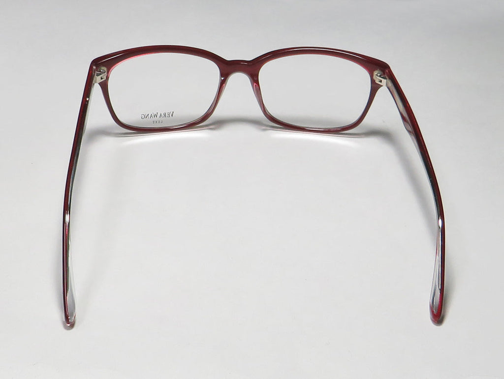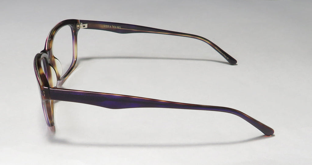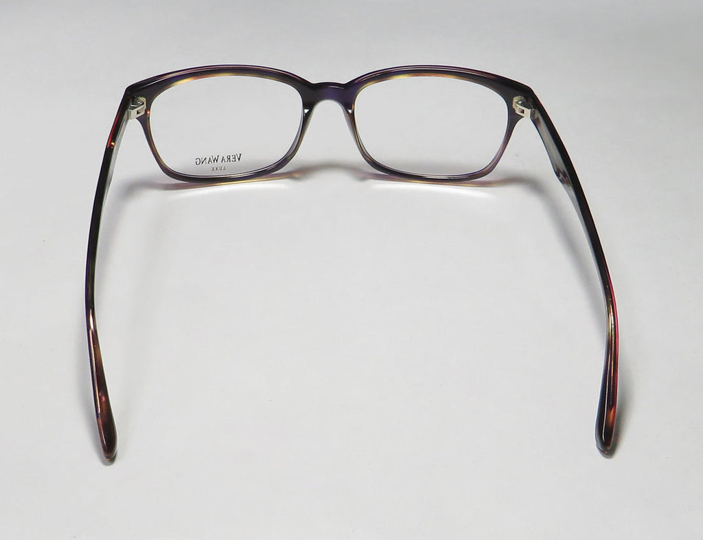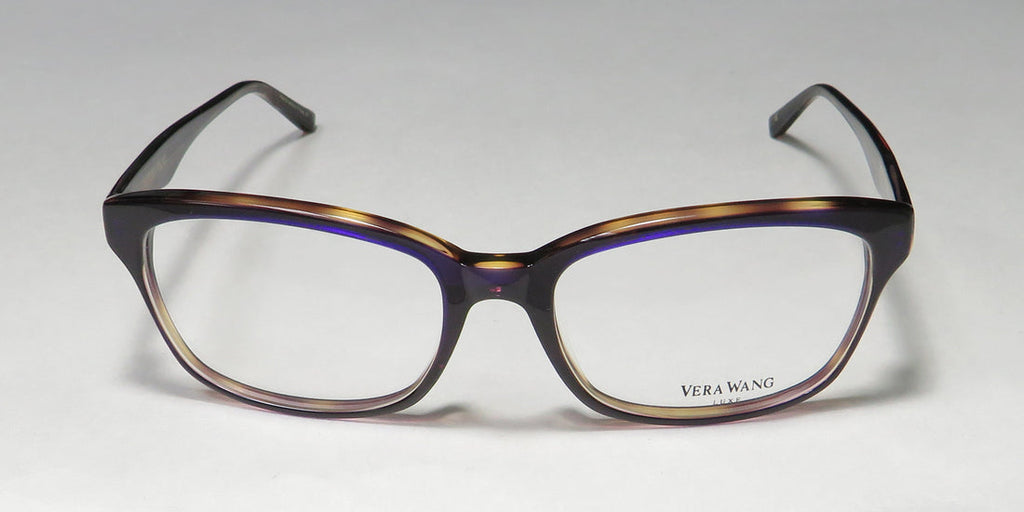 The frame is sold with demo lenses that have a logo stamped on them in ink. The frame can be fitted with real lenses at most optical stores. This frame provides comfortable fit and flatters a variety of face shapes. These eyeglasses are crafted from high quality, durable premium acetate plastic. This frame is from exclusive Luxe collection. This is a flagship line of eyewear manufactured by Vera Wang from highest quality materials. Original case is included. The glasses are made in China.