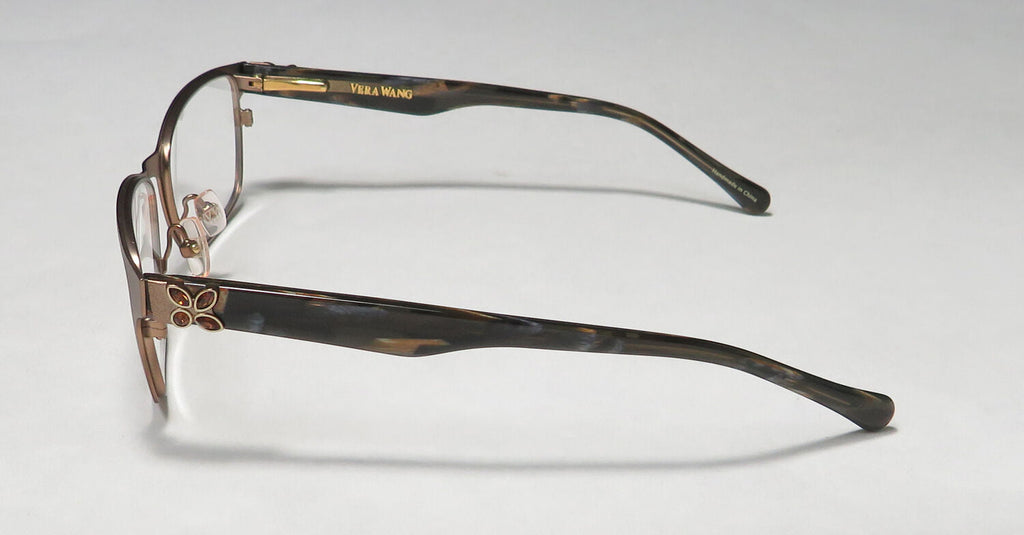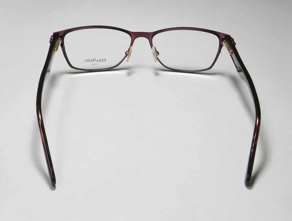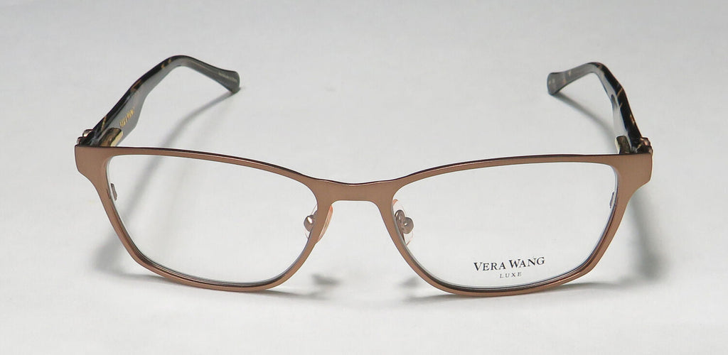 The frame is sold with demo lenses that have a logo stamped on them in ink. The frame can be fitted with real lenses at most optical stores. This frame provides comfortable fit and flatters a variety of face shapes. These eyeglasses are made of metal and high quality, durable acetate plastic. The frame has spring hinges. Spring hinge temples prevent you from stretching the fit of your glasses and ensure that they remain intact and not become loose or out of shape. This frame is from the exclusive Luxe collection. This is a flagship line of eyewear manufactured by Vera Wang from highest quality materials. Original case is included. The glasses are made in China.