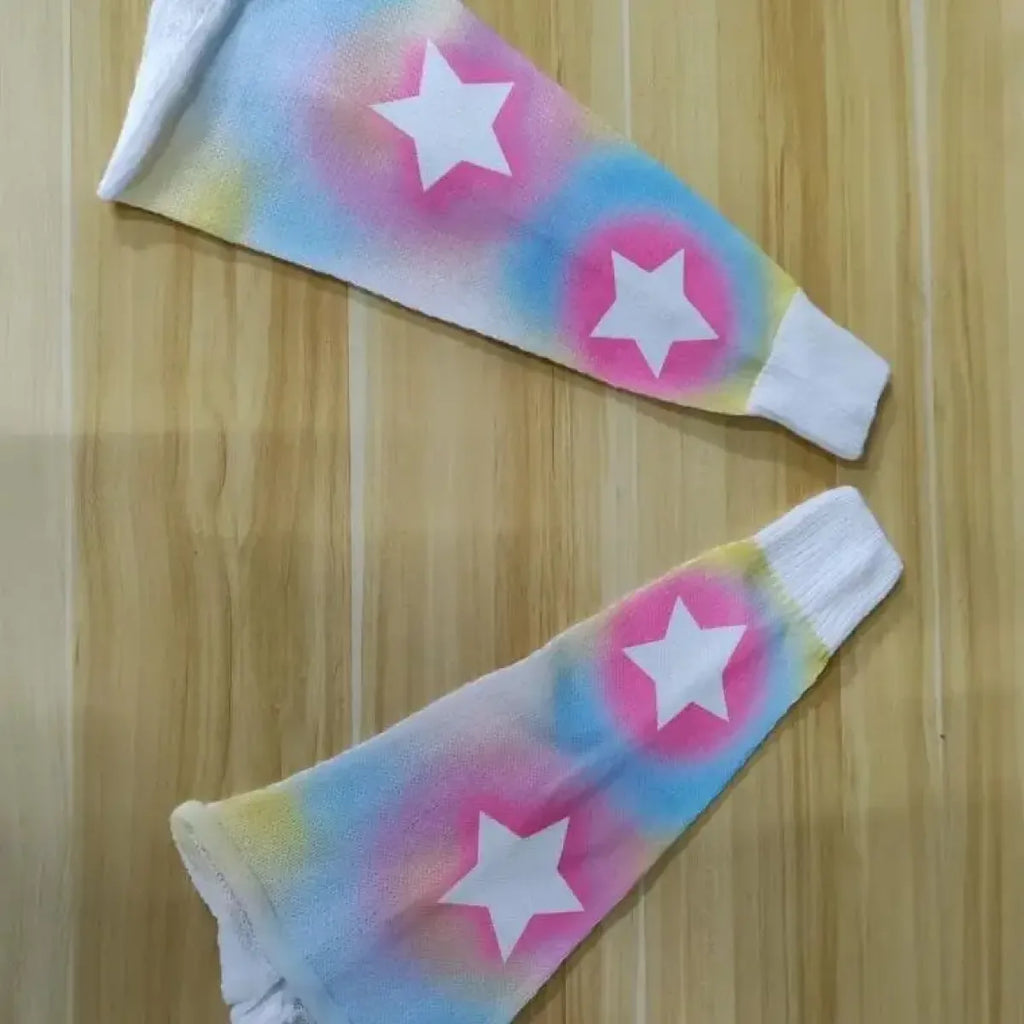 Y2K Kawaii Star Leg Warmers – Harajuku Pastel Tie-Dye Sleeves